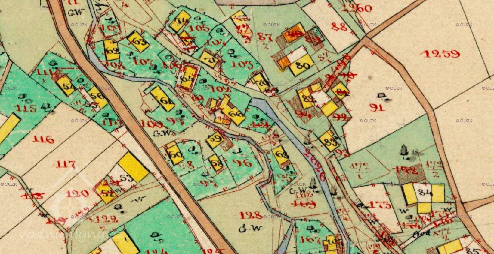 Od jezu náhonem na vantroky a přes vodní kolo, po vykonání práce krátkou odpadní struhou zpět do potoka.