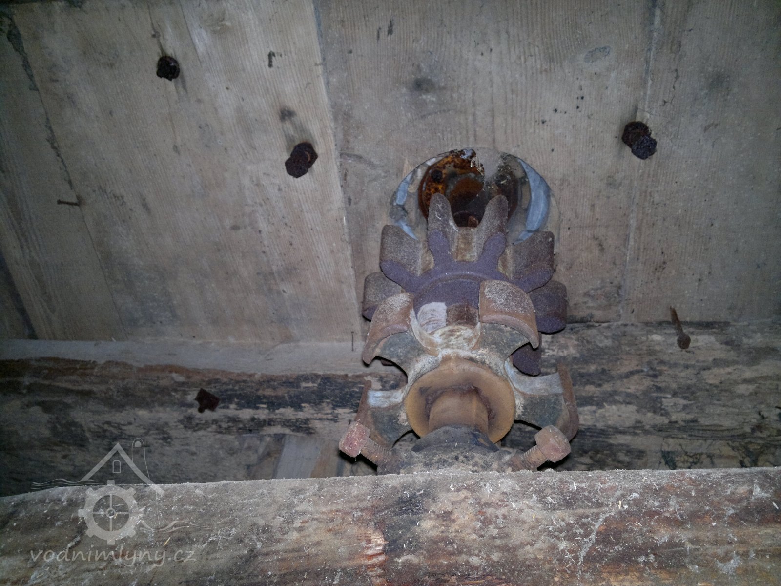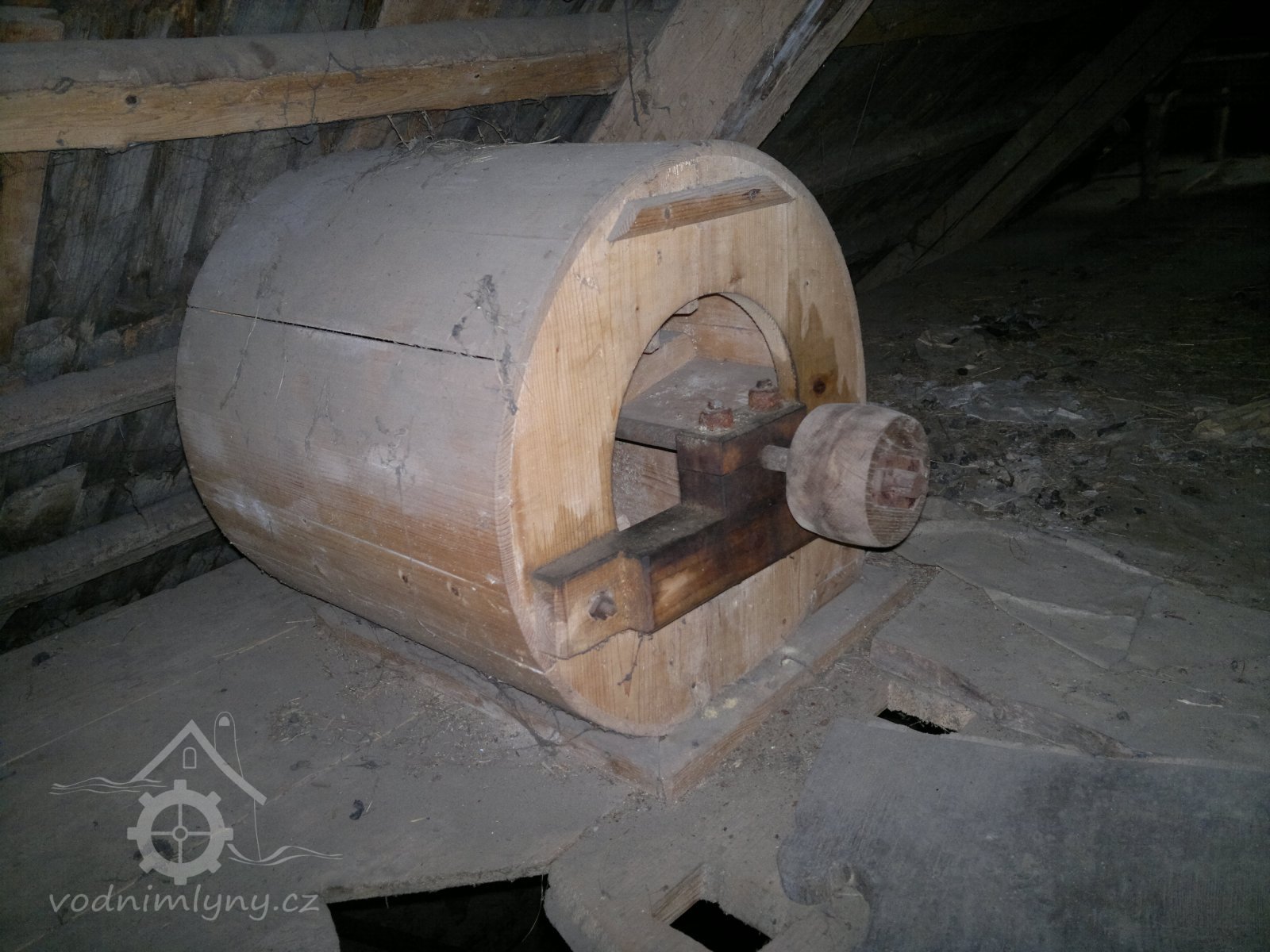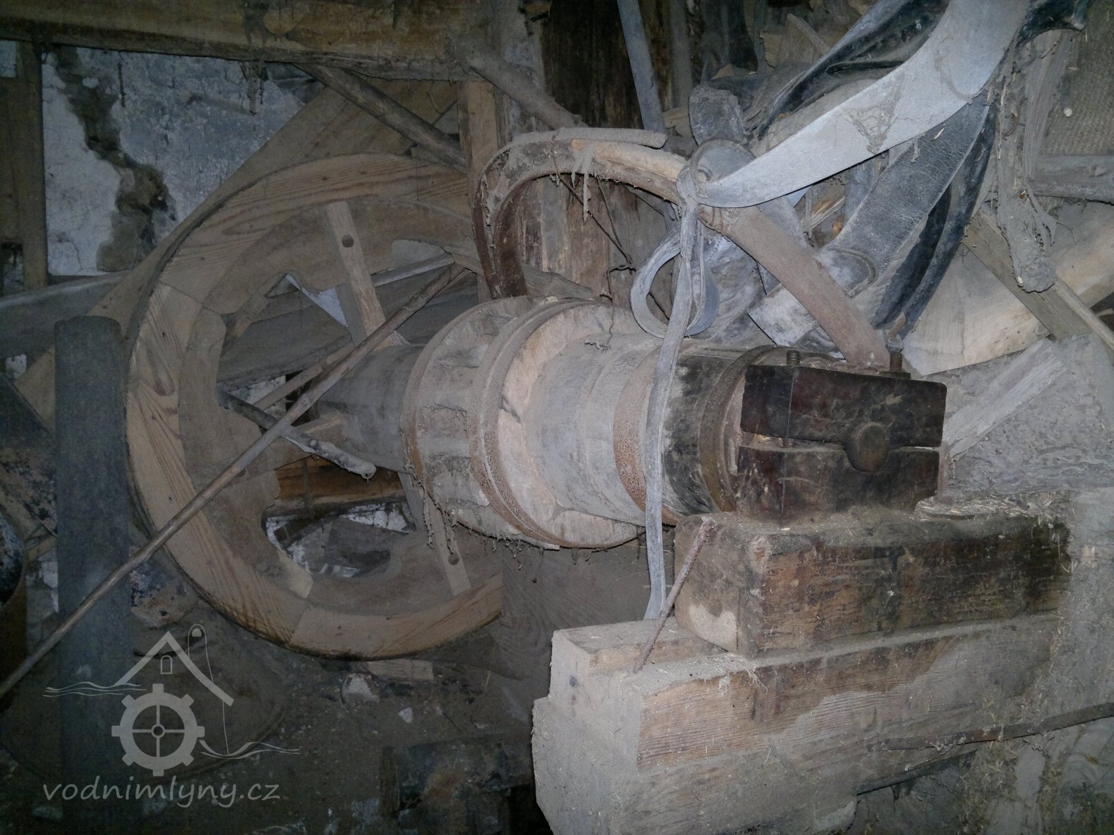 transmisní hřídel vyvedena z mlýnice do přístavku stodůlky, kde se otáčela dřevěná řemenice, která poháněla různé stroje dle potřeby