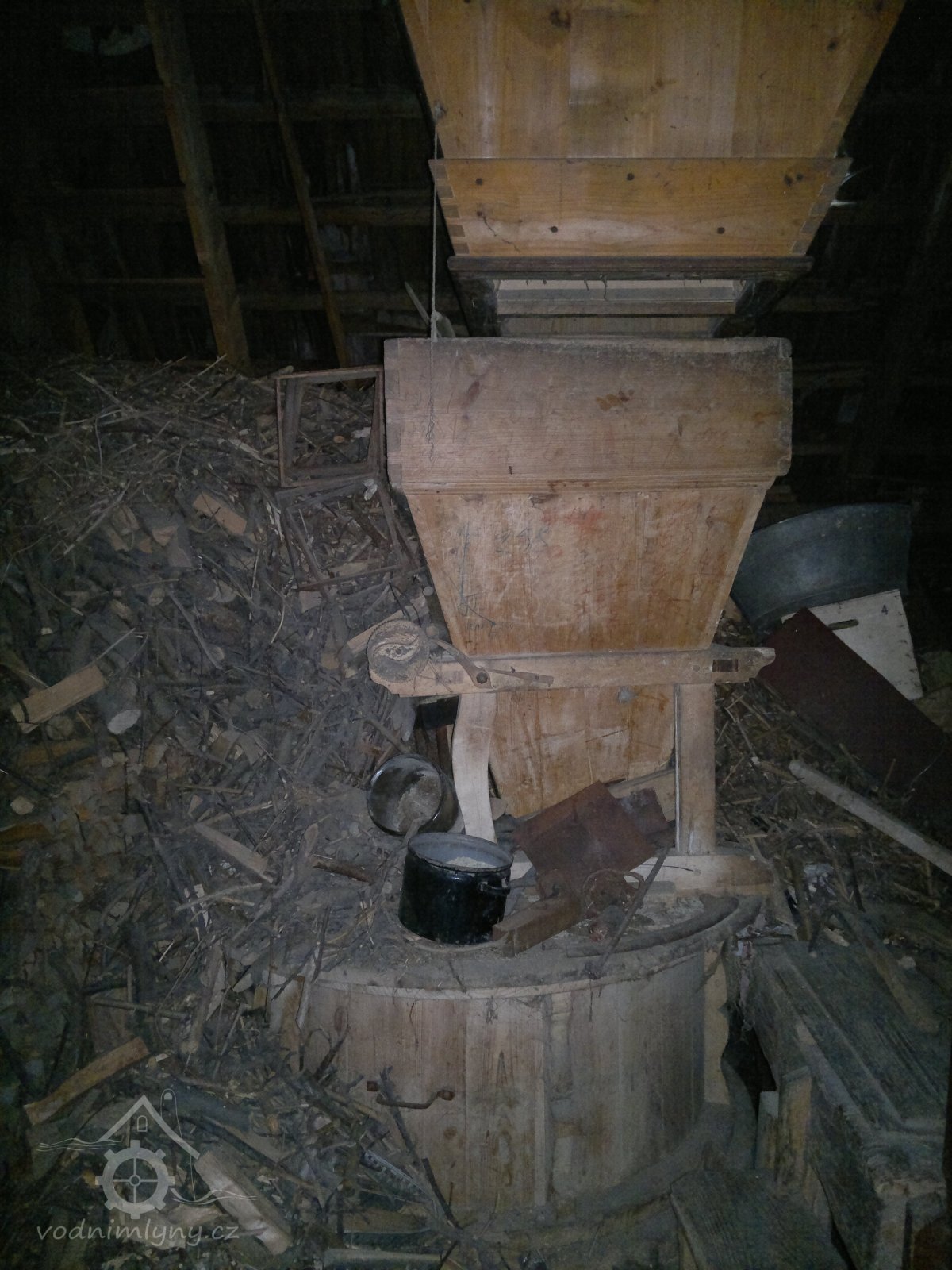 Unikát ohledně strojní technologie. Mlýn původně s jedním kamenným složením na přelomu stol. 19. a 20. modernizován na umělecký strojní mlýn, avšak nikdy nebyla pořízena válcová mlecí stolice a stroje novější. V podkolí dochována mlýnská hranice. Od vodního kola procházela dřevěná hřídel dovnitř do podkolí. Zde se na hřídeli otáčelo dřevěné paleční kolo zapadající do dřevěného pastorku (cévníku) na dřevěné hřídeli s řemenicí. Ta roztáčela malou transmisi s kovovou hřídelí uchycenou na věšácích s ložisky u stropu na trámech o podlaží výše. Transmise roztáčela pomocí plochých kožených řemenů tyto stroje: 3 kapsové dopravníky, taráry, žejbro, vysévač, a malinkou štosku. Paleční kolo roztáčelo 2 kamenná mlecí složení, první francouzké přes vertikální kovovou hřídel s pastorkem, druhé obyčejné - špicovací přes řemenici. V podkolí se nacházela moučnice s proséváním.