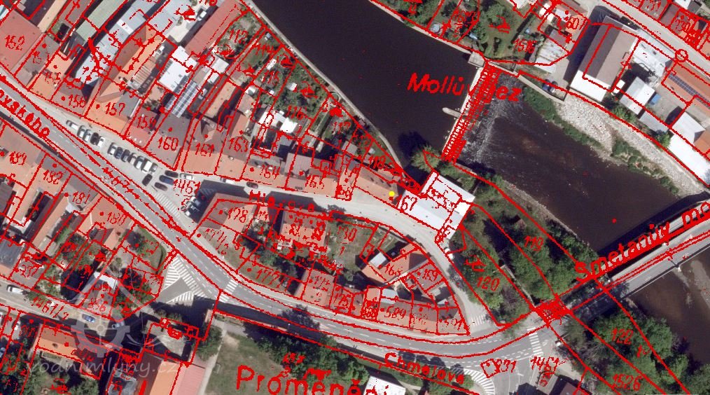 U mlýna je jez, na zahradě u mlýna je patrný odtokový kanál, z vyhlídky a mostu je dobře vidtelný.