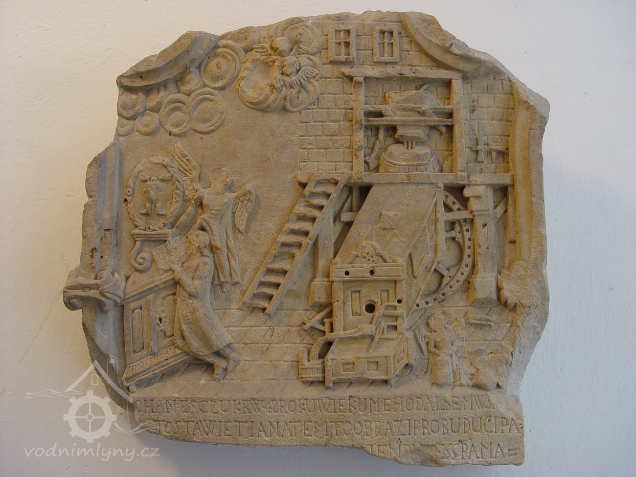 Barokní pamětní kámen z Pravčického mlýna - Rudolf Šimek (článek uveřejněný ve sborníku Střední Morava, 15, 2009, s. 80 - 87). I. Úvod a popis reliéfu Na reliéf mě při příležitosti semináře středověkého umění na katedře dějin umění v Olomouci upozornil prof. Ivo Hlobil. Tímto mu za jeho upozornění mnohokrát děkuji, nejen za sebe, ale i za laickou a odbornou veřejnost, jež se může seznámit s unikátem, který podle mého dosavadního bádání nemá ve střední Evropě obdoby.1 Po nějakém čase jsem se osobně dostal do Kroměřížského zámku, abych se na domnělý epitaf podíval. Za umožnění přístupu k reliéfu a pomoc s vyhledáním prvních informací o něm děkuji knihovníku arcidiecézní knihovny Bc. Cyrilu Měsíci. Z předběžného průzkumu vyplývá, že se touto památkou zatím nikdo podrobněji nezabýval. Její popis a nálezové okolnosti uvádí pouze Dr. A. Breitenbacher v ručně psané inventární knize2 arcidiecézního muzea v Kroměříži, jehož byl Breitenbacher zakladatelem. Podruhé se o reliéfu zmiňoval v článku pro Časopis vlasteneckého spolku musejního v Olomouci z roku 1927.3 První inventární kniha je velmi důležitá, protože zde, na pravém okraji stránky, věnované popisu reliéfu, Breitenbacher zanechal krátkou poznámku. Doslova napsal: V síni zv. „Princenhause“, pochází prý z Pravčic. Tento kámen byl mi pohnutkou, že jsem zařídil „museum“.4 Z tohoto přípisku se dozvídáme jedinečnou zprávu o motivaci k založení muzea, jíž si nikdo doposud nevšiml. To ale není vše, bez něj bychom se také velmi těžko dopátrali místa, odkud pamětní kámen pochází, tedy mlýna v obci Pravčice. Existenci mlýna a rodu Czukrů v Pravčicích dále potvrzuje kniha od Františka Peřinky, Kroměřížský okres, I. část, pocházející z řady knih Vlastivěda moravská. V ní se nachází zmínka o tom, že rod Czukrů přišel do mlýna v první polovině 18. stol. Další zajímavý poznatek skýtá věta: „František Czukr r. 1787 zemřel a mlýn spadl na jeho syna Jana.“5 To by korespondovalo s nápisem pod reliéfem, ale o tom se zmíním později. I tato informace nám pomůže k přesnějšímu datování pamětního kamene. O Pravčickém mlýnu naposledy psal Arnošt Pospíšil. Ve své knize Mlýny a mlynáři ve staletích uvedl, že mlýn byl na „konci 18. století celý nově postaven“ a že rod Czukrů pocházel z Uher.6 Bohužel bez uvedení pramene. Ještě téhož dne, kdy jsem reliéf spatřil poprvé, se při návštěvě Pravčic potvrdilo, že kámen pochází skutečně odtamtud. Naproti místu, kde v minulosti býval mlýn, stojí dnes kamenný a bohatě zdobený sokl, skládající se ze dvou částí. Na té spodní spatříme vytesané tři nápisové kartuše. Na jedné z nich je jasně čitelné jméno Czukr, na další pak letopočet 1782. Dvě větší protilehlé kartuše kdysi obsahovaly rozsáhlý text, jež je dnes takřka nečitelný. Zmíněný sokl se ještě v nedávné době nacházel zazděný v budově bývalého mlýna.7 Tato památka, která by si zasloužila odborný přepis textu a alespoň minimální restaurátorský zákrok, nám pomáhá přesněji samotný pamětní kámen datovat. Vzhledem k výše zmíněným okolnostem vznikl samotný reliéf někdy v 90. letech 18. století. Na pamětním kameni je zobrazeno vnitřní zařízení mlýna a část interiéru. Reliéf bychom mohli rozdělit na tři díly: spodní textovou část a dvě tématicky odlišné poloviny obrazového reliéfu. V levé půlce s náboženskou tématikou klečí na klekátku u menšího domácího oltáře muž v holínkách a oblečení, které odpovídá době vzniku reliéfu a čte či ukazuje na text napsaný v knize.8 V knize stojí nejspíš osobní heslo Jana Czukra. Do dnešních dnů se zachovala většina písmen. • Spasenie • V Gež… • Chr…. • g est Nad ním se vznáší anděl, který mu ji přidržuje. Klekátko, které je součástí rohové skříně zvané „koutnice“ nebo obyčejné přízední skříně, nese vyrytý nápis S INOCENCIUS. Skříňka slouží coby podstavec pro oltářní nástavec, má uzamykatelná dvoukřídlá rámová dvířka. Nástavec tvoří obdélná deska s volutovými nožkami, na které stojí oválný věnec a v něm vyobrazené dvě nohy (od kotníku dolů) dvě ruce a srdce. Všech pět částí těla má naznačené rány, symbolizují pět ran Kristových. Nad scénou se v oblacích vznášejí dva andílci, naznačení pouze obličeji a křídly. V pravé půlce reliéfu spatříme tzv. „obyčejné české složení.“ To se skládá z nosné trámové konstrukce, nazývané mlýnská hranice, na níž vedou schody, dále z mlecích kamenů, umístěných do lubu, do něhož je zaseknutá sekera a nad kterým se tyčí násypný koš, upevněný v jednoduché nosné konstrukci. Pozoruhodný detail tvoří tzv. „zubaté pachole“ v pravém dolním rohu konstrukce. Pod mlecími kameny máme na podlaze mlýnice moučnici s moučnou truhlou. Pro pohon mlecích kamenů a prosévacího zařízení se používalo vodní kolo, které zde zobrazeno není, avšak je zde zobrazeno kolo paleční, jež zajišťovalo přenos vodní energie z vodního kola na mlýnské stroje.9 Vpravo od moučné truhly stojí anděl zavazující pytel s moukou, vedle něhož je naskládáno několik dalších pytlů. Opodál leží na podlaze mlýnice kartáč, sloužící k vymetání mouky z moučnice do moučné truhly. Dalším zajímavým prvkem je umístění náhradní kypřice napravo od násypného koše. Nejspíš zde byl zobrazen i oškrt, ale to není zcela jisté, protože na dotyčném místě jeví reliéf známky mírného poškození. Poslední detail tvoří dvě okna, umístěná těsně nad konstrukcí násypného koše. Nesmíme zapomenout ani na zbytky nápisu, nac