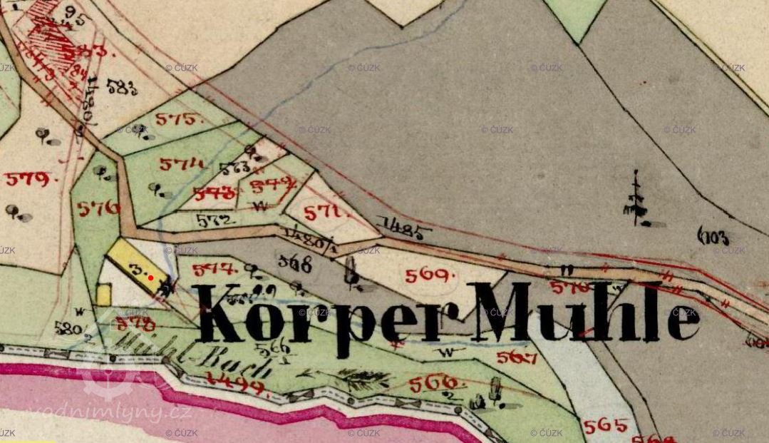 Korpermühle (SK 1845), Körpertův mlýn (3.VM topo 1916)