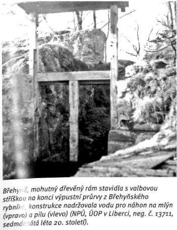 1797 sepsána nová smlouva mezi majitelem panství Bělá hrabětem Arnoštem z Valdštejna a mlynářem Franzem Wünschem ohledně úprav odtoku z Břehyňského rybníka, aby bylo umožněno mletí i po dobu výlovu. (Zvažováno i prolomení druhého odtokového kanálu vpravo od stávajícího, nakonec však rozšířena průtočnost dosavadního, zazděny skalní pukliny a dřevěný mostek nahrazen kamenným klenutým.) Rozpočet činí 1375 zl. 45 kr., z panského důchodu bude vyplaceno 1200 zl. ve 3 termínech v průběhu roku 1798.