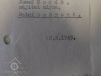 1651 Soupis poddaných podle víry - mlýn Jeho Milosti Knížecí: mlynář Jakub Hoffman (37 let), jeho žena Marjána (35), syn Jiřík (15), všichni poddaní katolíci