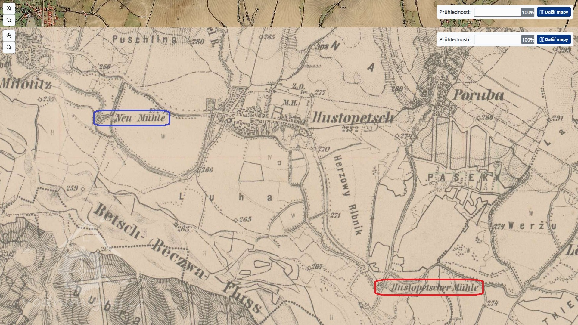 V roce 1930 byla majitelkou mlýna Amálie Stratilová, u mlýna je uváděna pila. V roce 1930 je uváděna jako tok Bečva a ne rybníky Majdalenka I a Majdalenka II.