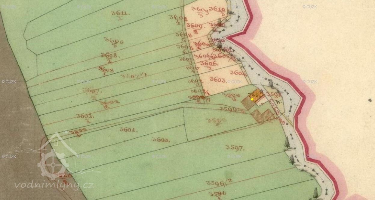 Mlýn, původně valcha se poprvé objevuje na Císařském povinném otisku jako malá spalná stavba. Na mapě II. voj. mapování je mlýn zakreslen v nesprávné poloze.