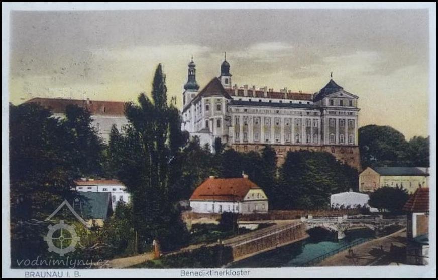 Za opata Jana III. Chotowského (1553-1575) šel k zemi původní dřevěný mlýn, nahradil ho kamenný (1570). Renesanční přestavbu dnes nejviditelněji připomínají ve fasádě zasazené erby opatství a Chotowského, pozdější barokní úpravy zase severní štít, který rozpoznáme snáz z dobové rytiny (1749). Na ní rovněž můžeme vidět sádky, porybného chaloupku a soukenickou valchu, odkud Broumovští od 16. věku čerpali vodu pro kašnu na náměstí.