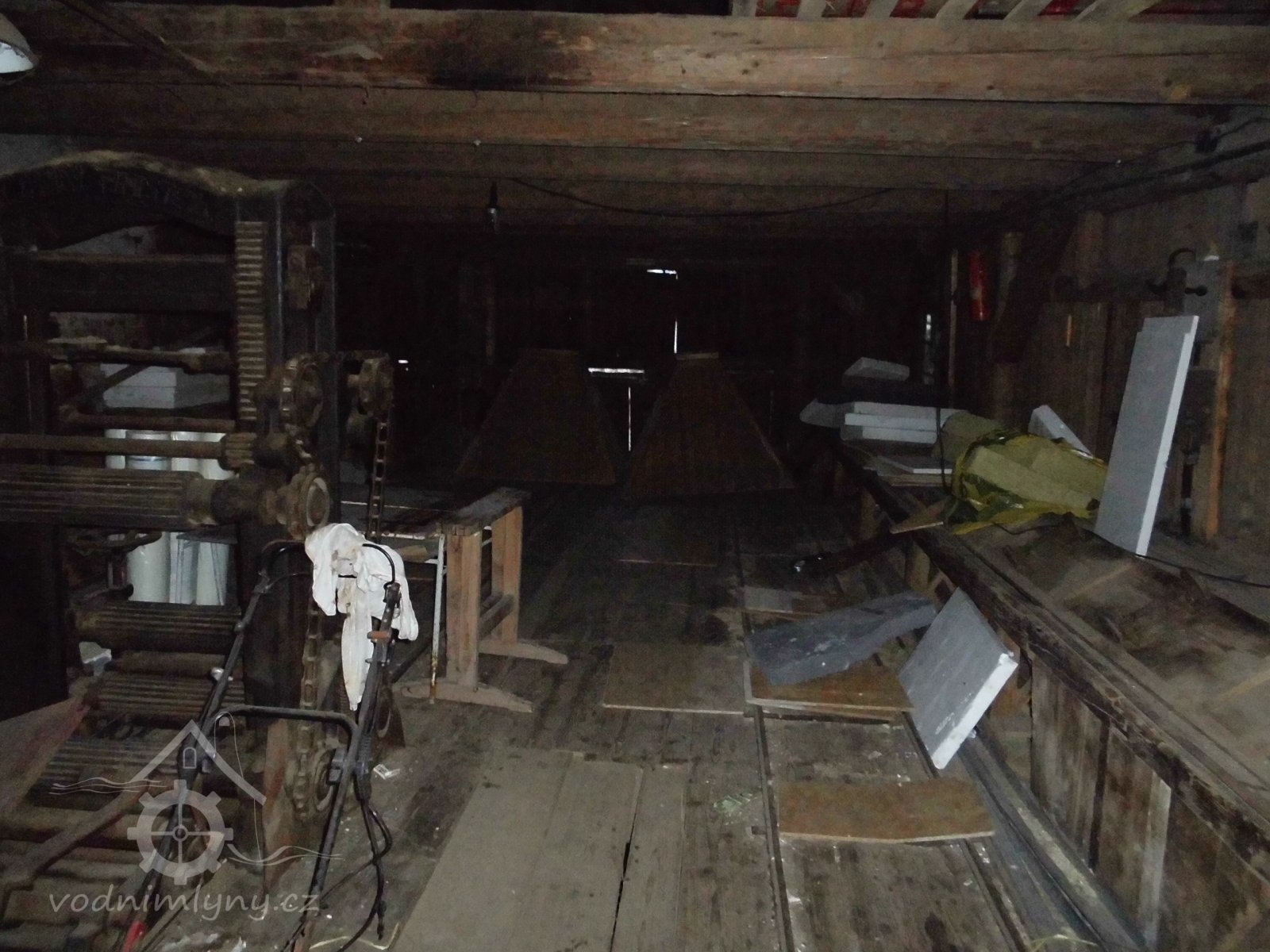 zásobníky v podstřeší, 2013, © Veselý, (Prvky na obrázku: zásobník, násypka)