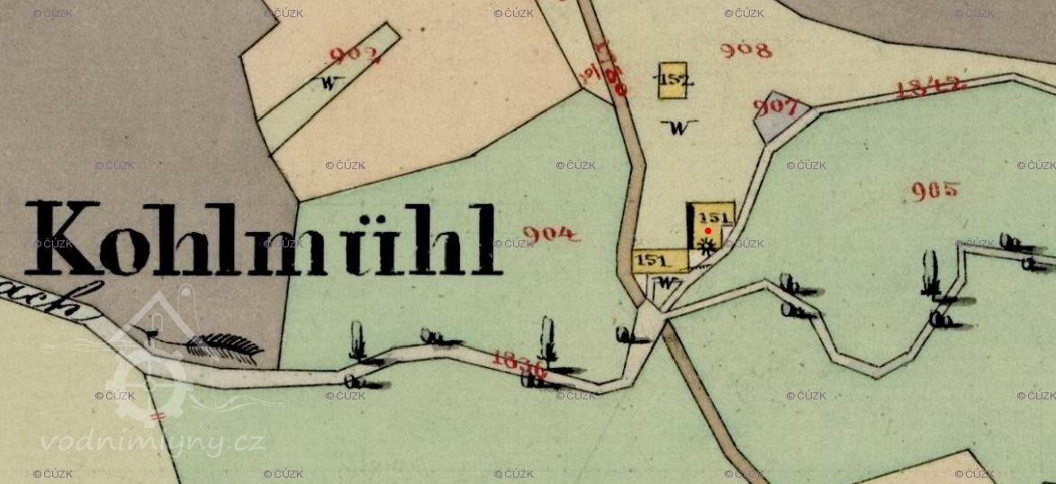 K usedlosti patřil i Karlův mlýn (Karlmühl, Koldmühl), kde bývala i pila. Dvůr i mlýn s tehdy již zbouranou pilou dostal v roce 1933 Peter L. (a jeho žena Therezie) a byl později nucen prodat mlýn Petzoldově továrně v Hamrech (Gustavshall), protože přišel o vodní práva, která byla po staletí v celém údolí předmětem sporů. Ke mlýnu vedl krátký náhon, který ležel severně od koryta Úhlavy. Peter L. hospodařil na horní usedlosti až do odsunu v r.1946. Podle vzpomínek paní, která pamatuje objekt Karlova mlýna, měla tato chalupa dlouhé přesahy střechy se závětřími a květinami, kam v zimě nepadal sníh… Dnes na místě mlýna stojí dvě dvouchaty a je to místo těsně nad koncem elektrárenské přehrady (např. chata pana Malána).