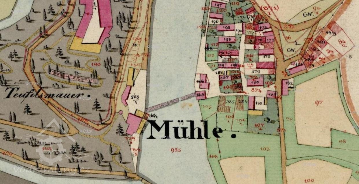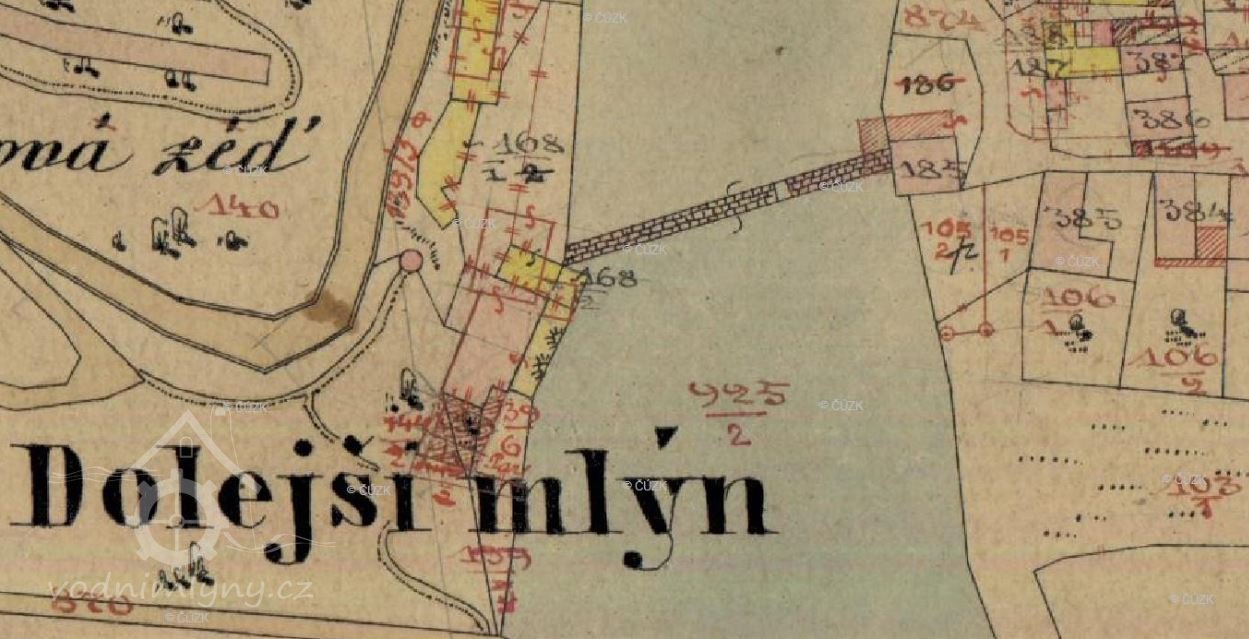 Mlýn uveden v Seznamu vodních děl Republiky československé z r.1930, maj. Anna Schmidingerová