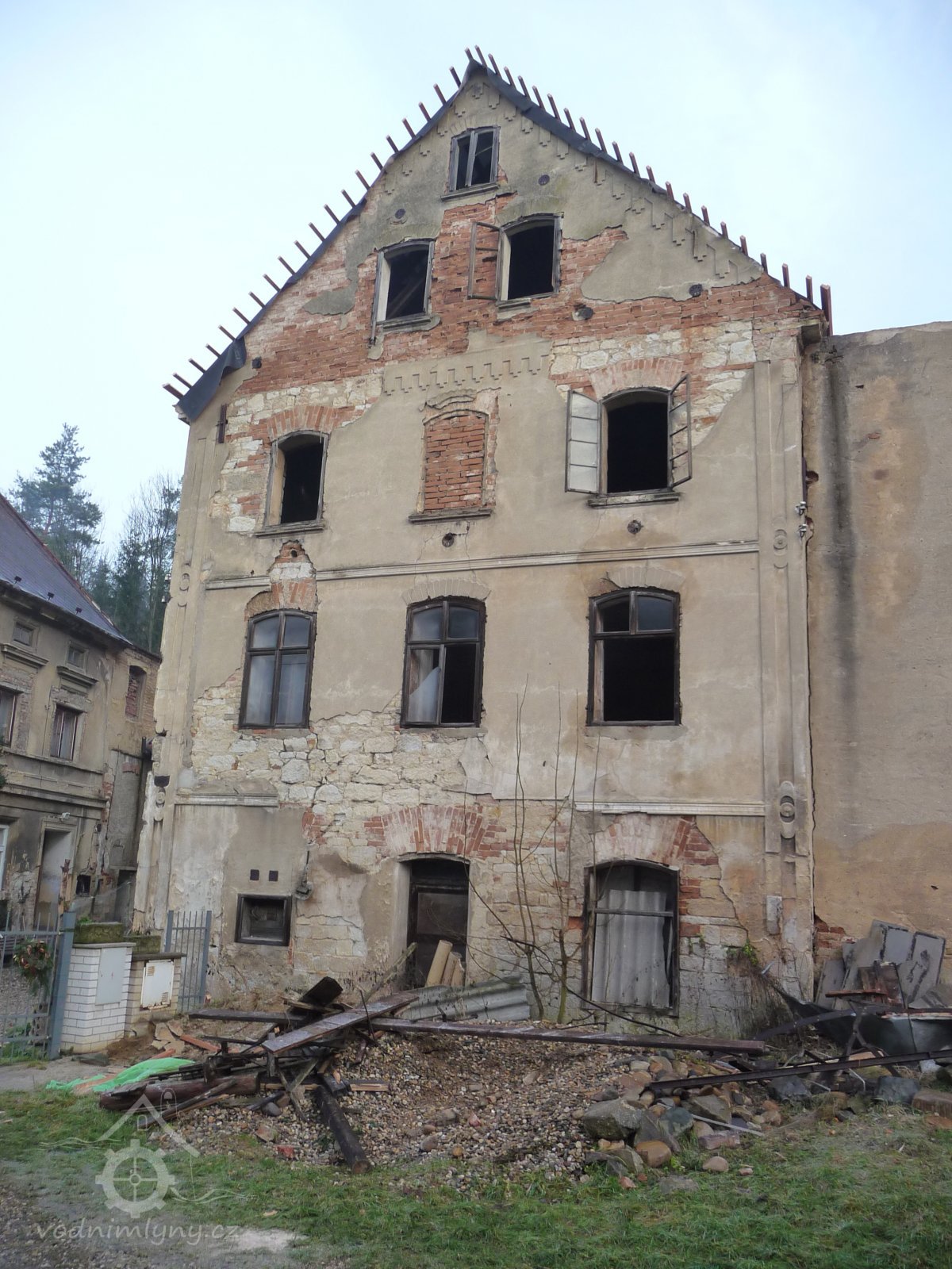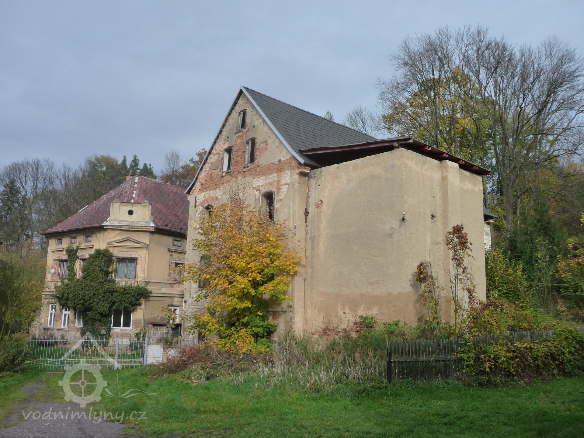 každopádně ze mlýna tam není vůbec nic, mlýnice byla odbourána v 80. letech (bohužel mými rodiči v duchu soc. realismu). Uvnitř vily jsou betonové podlahy a panelákové dveře + přístavba koupelny na místě původní mlýnice - víc naštěstí nestihli a vzory těch dveří a oken otec uskladnil, takže se dají vrátit resp. replikovat. Ten prázdný dům s novou střechou je čp. 24 ale není a nebyla to mlýnice - 1. patro obytné, 2 a další patro. sýpky na obilí a chmel , nebyli to jen mlynáři zřejmě i chmel měl velký význam co vím od babičky, když tam přišli po válce, potkali se s původními majiteli, ale už jen ženy a děti, z mužů se nikdo zřejmě nevrátil. nějakou dobu tam žili společně v klidu a míru.