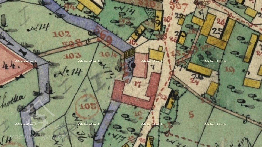 Původní č. p. bylo 17. Mlýn zanikl po r. 1953.