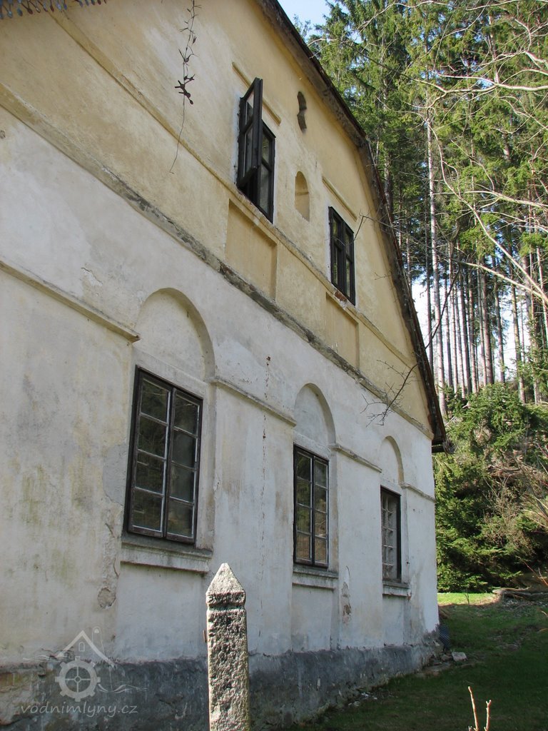 Obytná budova s mlýnicí obdélného půdorysu je zděna částečně z cihel, částečně z lomového kamene. Obytná část ve zvýšeném přízemí, pod kterým se nachází valeně klenutý sklep, obsahuje dvě původní místnosti, dnes oddělené příčkou, s neckovými klenbami a pětibokými lunetami. Podlahy jsou prkenné. Budova mlýna je dílem poměrně náročné klasicistní přestavby nejspíše někdy před polovinou 19.století. Tomuto vročení nasvědčují použité konstrukce i tvarosloví (klenby světnice i světničky, tzn. vstupního portálu ještě se zachovalými dveřmi, parapetní římsy oken, tvarosloví štítového průčelí). Zajímavým a příznačným detailem jsou bohatě profilované konce stropních trámů resp. kráčat, podpírající okraj střechy, která přečnívá nesymetricky nad zápraží. Uplatnění tohoto motivu svědčí o tom, že tradice dřevěné architektury byla při stavbě dosud živá - právě řešení takovéhoto střetu užití dřevěného zápraží se zděným štítem vedlo k neohrabané konzolové konstrukci. Dispoziční situace budovy mlýna se nevymyká běžnému schématu, které je v zásadě dvojdílné (mlýnice a obytná část) se vstupem do mlýnice, která zároveň plnila funkci síně. Obytná část je na poměrně malé ploše dosti bohatě členěna půdorysně, užitými typy stropů resp. kleneb. Zajímavé, ale pro oblasti s výskytem kvalitního stavebního kamene příznačné, je kamenné provedení stavebních článků mlýnské hranice, pilířků i překladů. I ony patrně patří ke zmiňované přestavbě v 19.století. Z bývalé kuchyně byla přístupná šalanda (pro havarijní stav odstraněna). V mlýnici otevřené do krovu - v současné době bez zařízení - zůstala pouze hranice ze žulových kvádrů. Krov je vaznicové soustavy se stojatou stolicí, střecha sedlová s polovalbou, krytá plechem. Původně se mlýnice otevírala do lednice dvojicí otvorů pro hřídele vodních kol, z nichž byl jeden později zazděn. Pouze jeden byl využíván pro vodní kolo na svrchní vodu, konstruované na dlab, patrně ještě z minulého století /od třicátých let mimo provoz, které bylo v sedmdesátých létech pro celkovou zchátralost nahrazeno novým vodním kolem na svrchní vodu obkročné konstrukce. Z mlýnice vychází směrem pod náhon k lednici do prostoru za vodní kolo kamenem vyzděná chodba. Plechem pobitá šindelová střecha je starší roku 1903, ze kdy je datována poznámka na její půdní části.