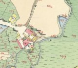 Mapa Císařského povinného otisku stabilního katastru z roku 1835 zachycuje areál mlýna téměř ve stejné půdorysné stopě, jak ji známe dnes. Z mapy je patrné, že objekt dvoukřídlé stodoly v dnešní podobě vznikl až později, a to v místě starší dřevěné stodoly. Ostatní budovy areálu zůstaly beze změny.