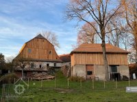 Příčně průjezdná zděná stodola vystavěná ve druhé polovině 19. století na místě staršího dřevěného objektu uzavírá severozápadní stranu dvora. Obdélná stavba připojená kolmo k hospodářskému stavení je zastřešena sedlovou střechou s bedněným štítem.
