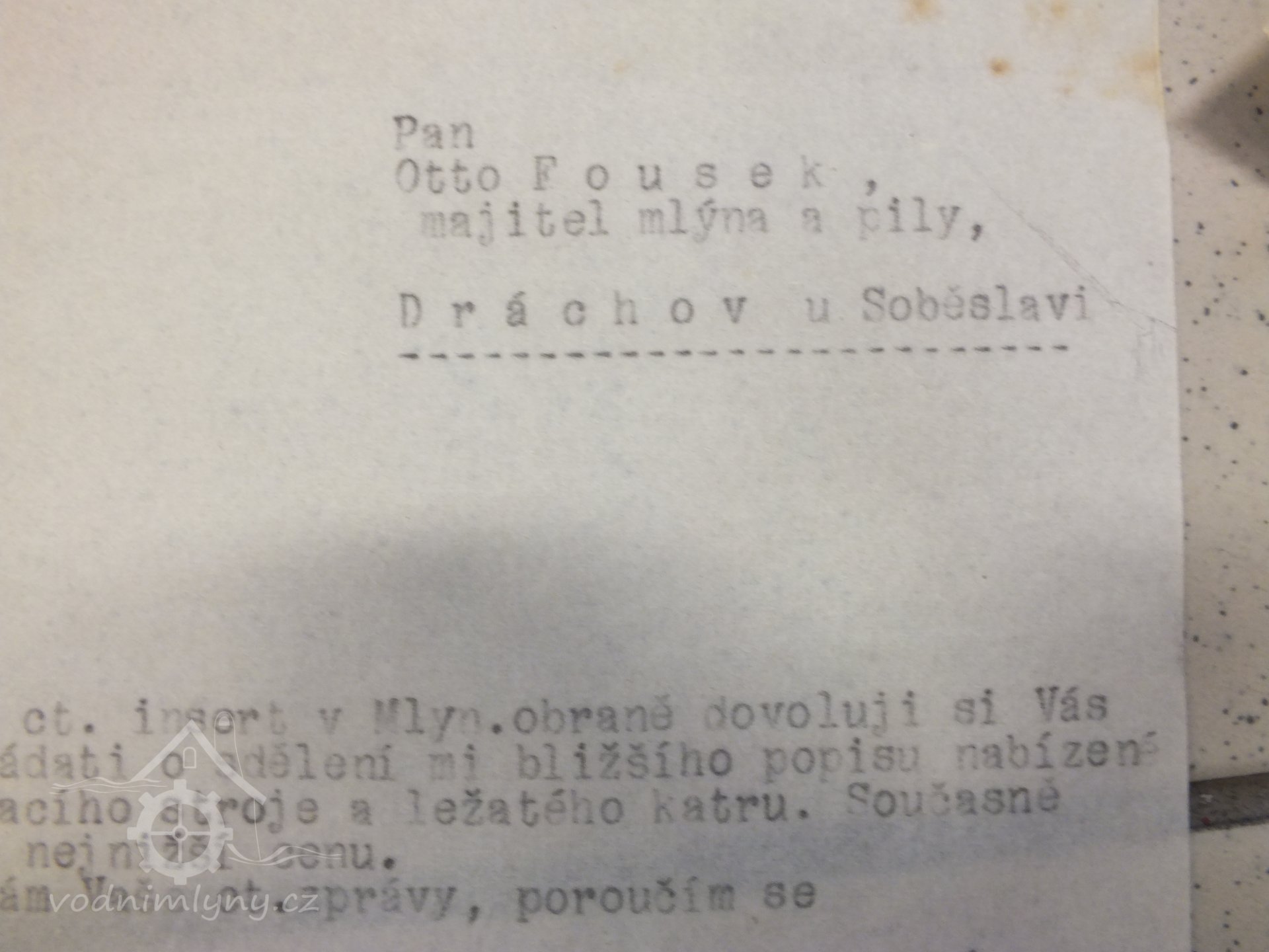 V Dráchově fungoval mlýn, elektrárna a pila firmy Kolář a spol.