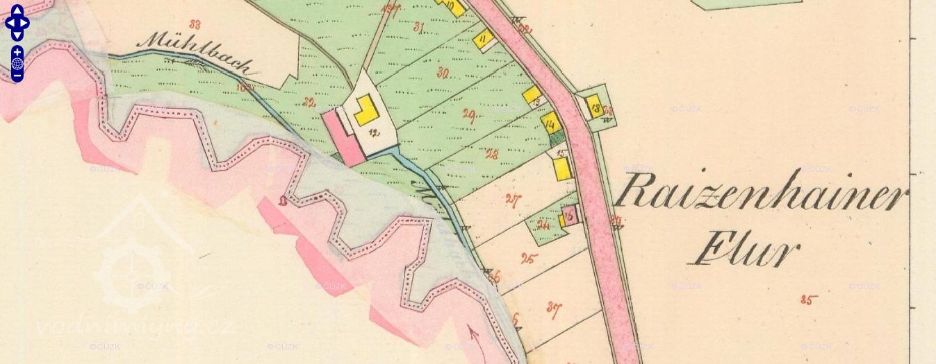 Reizenhainer Mühle Hnr. 8, objekt zcela zanikl po roce 1945 po vysídlení obce Pohraniční.