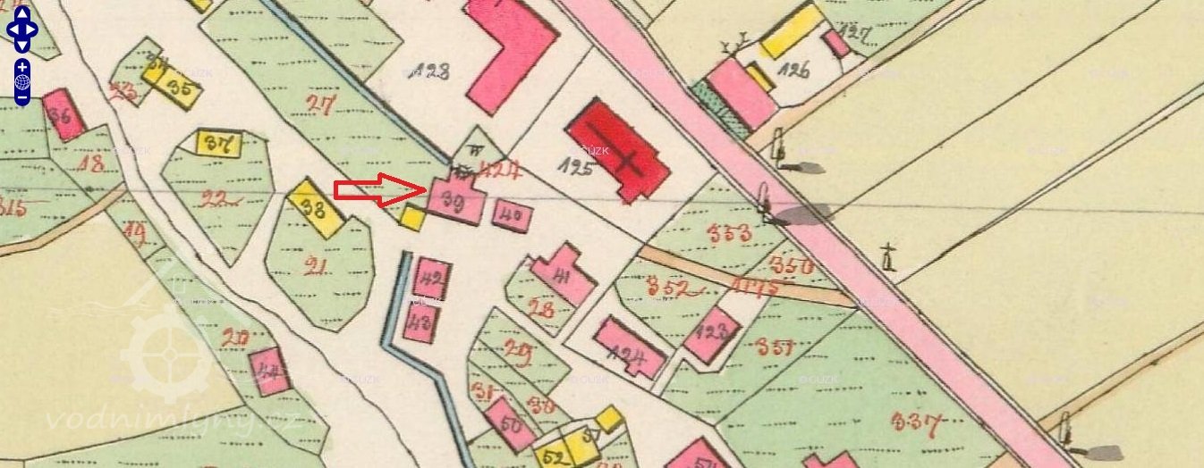 Popis1930: 1 kolo na svrchní vodu, hltnost 0,07 m3/s, spád 4,9 m, výkon 3 HP