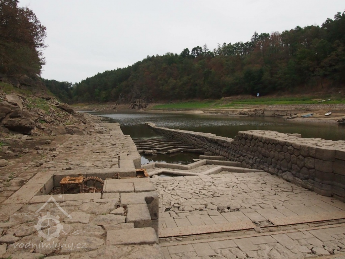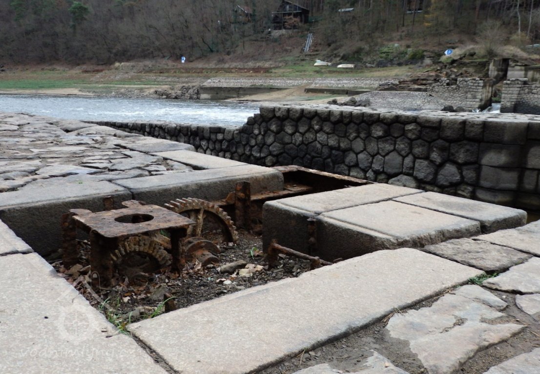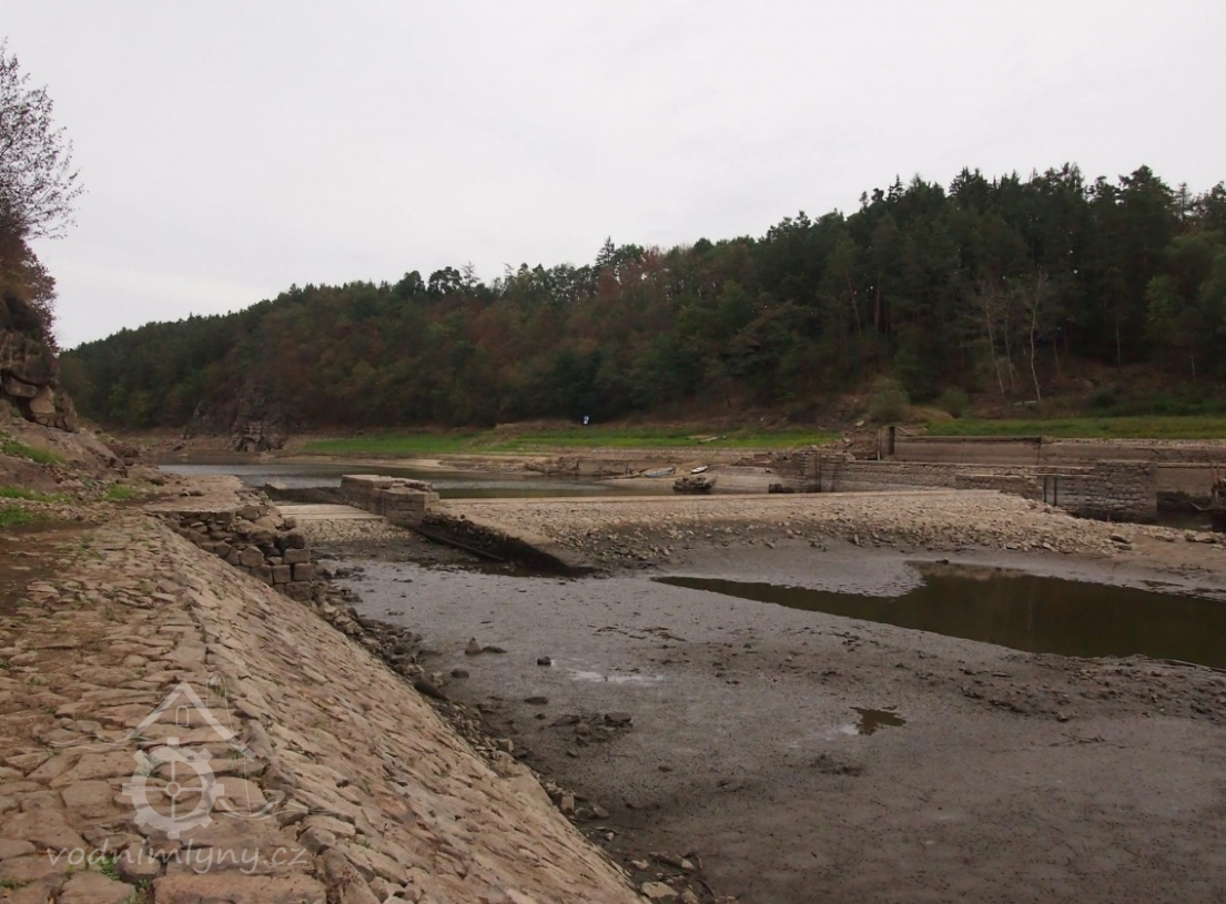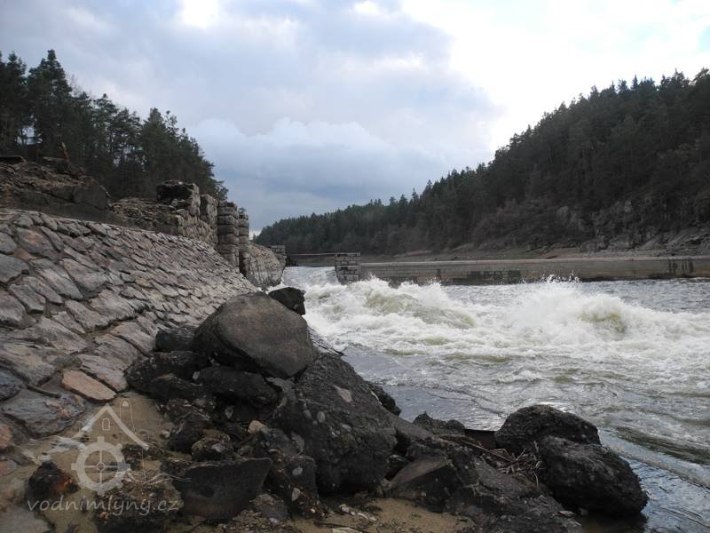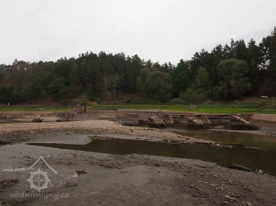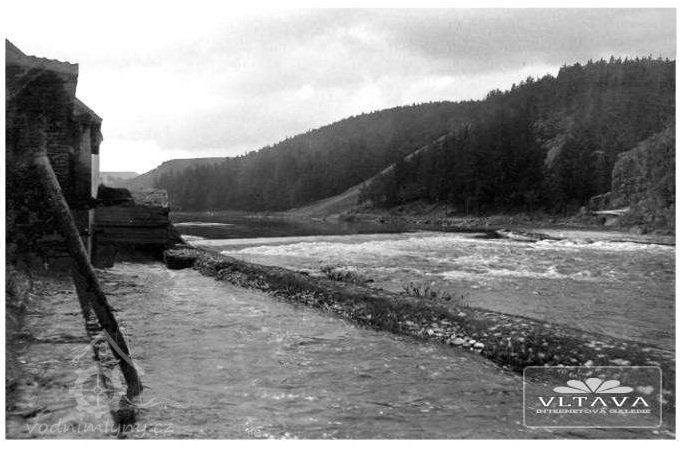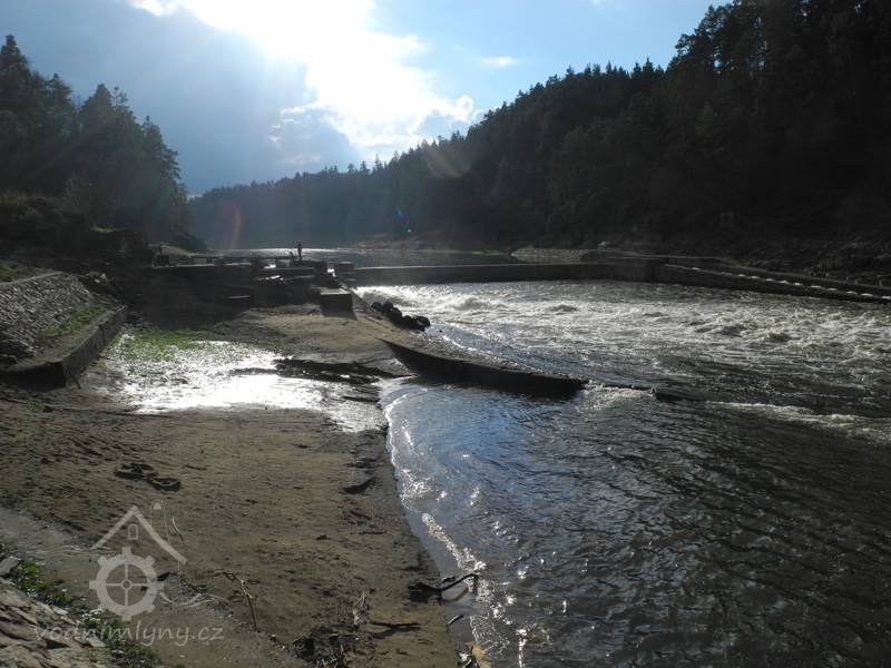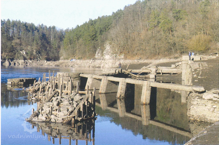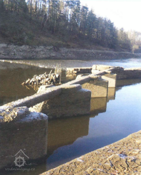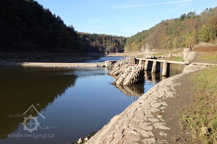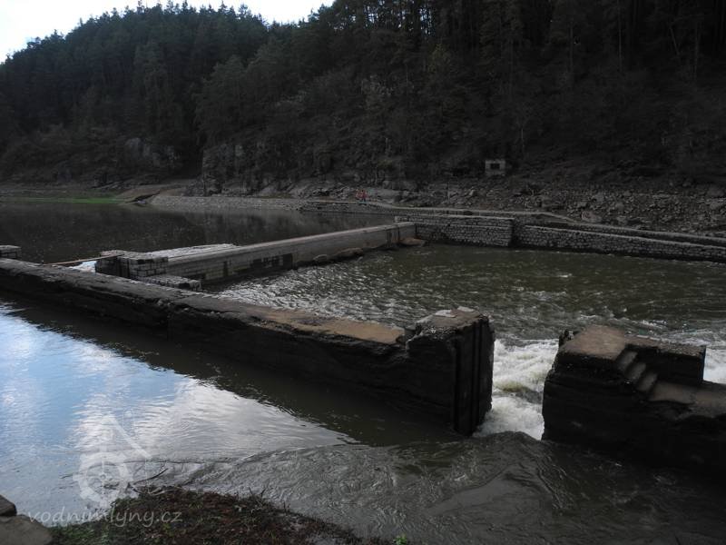 Zbytky mlýnu i s jezem jsou ukryté pod vodní hladinou Orlické přehrady.