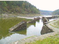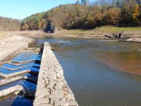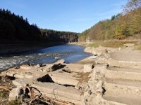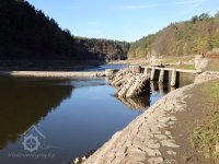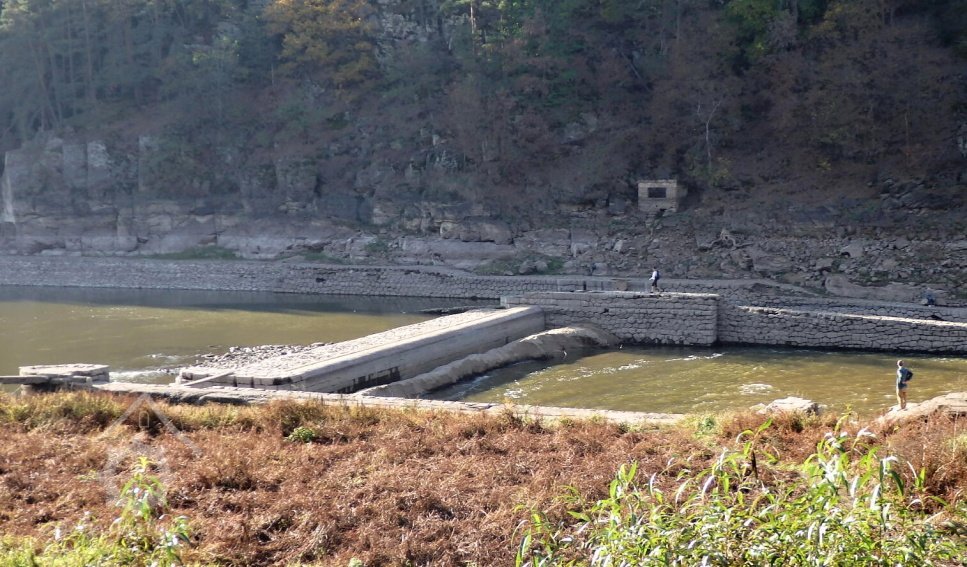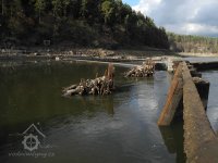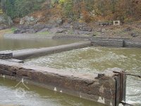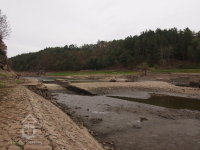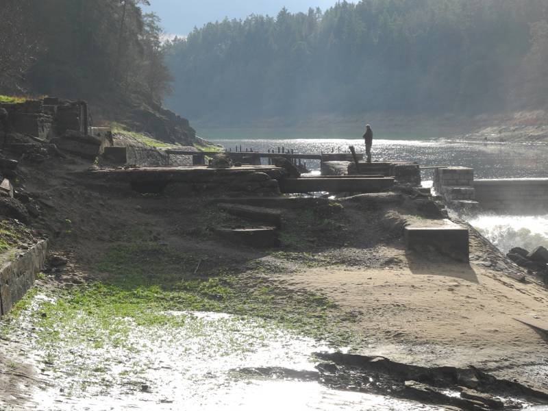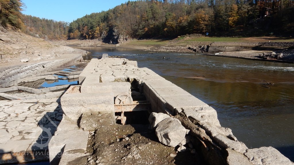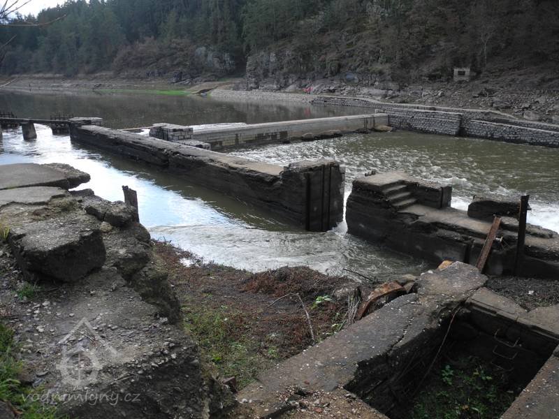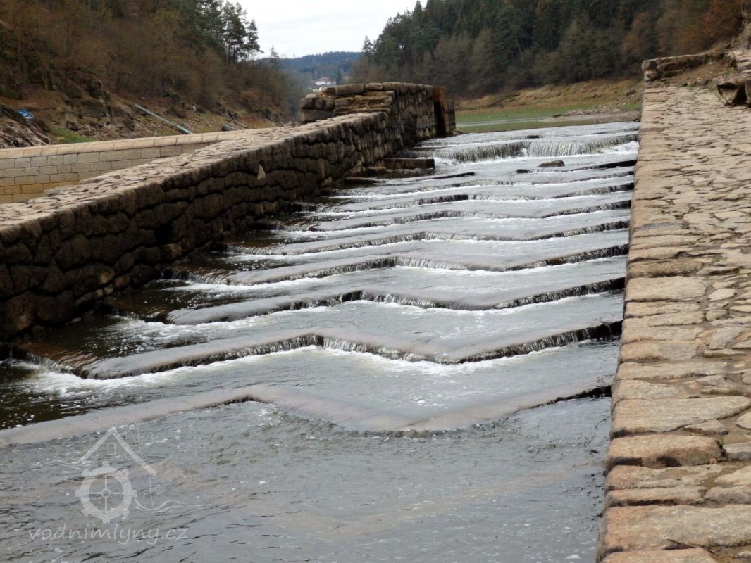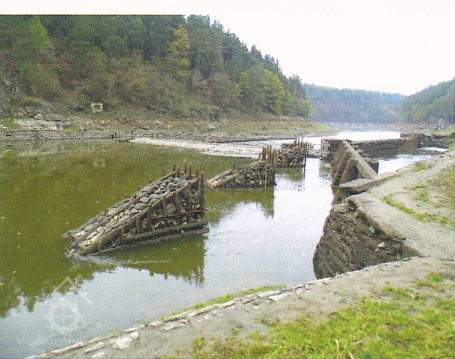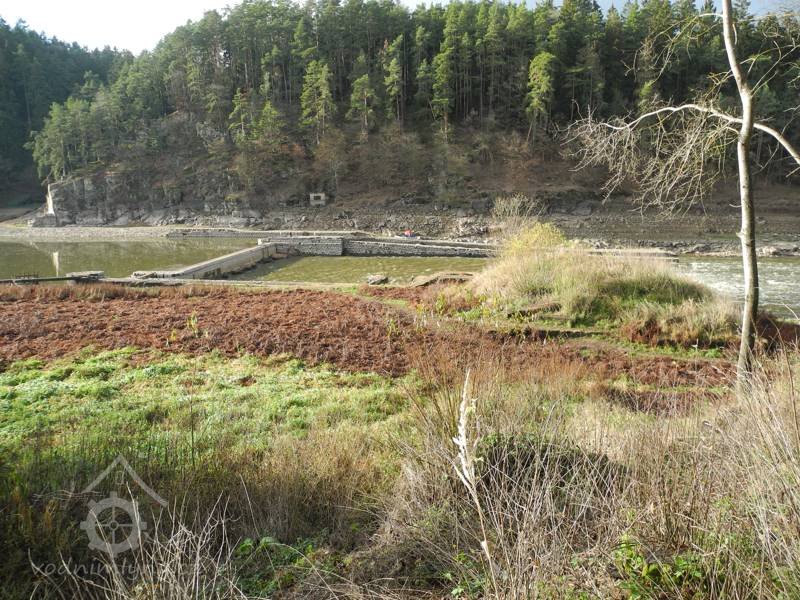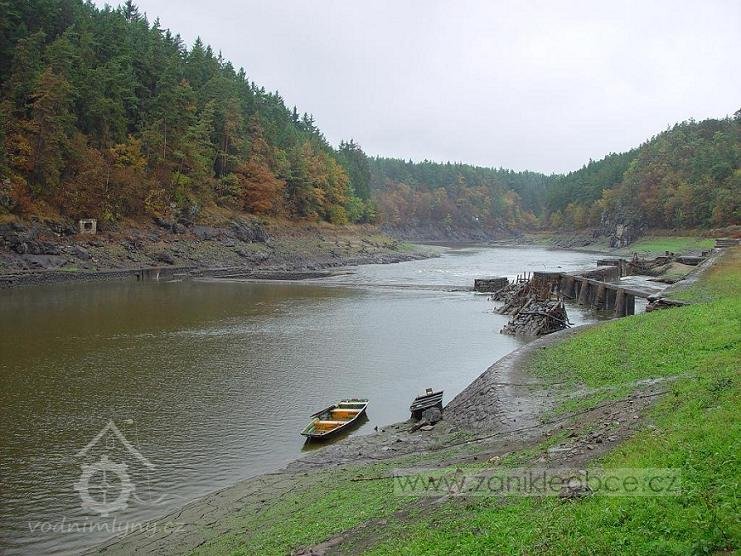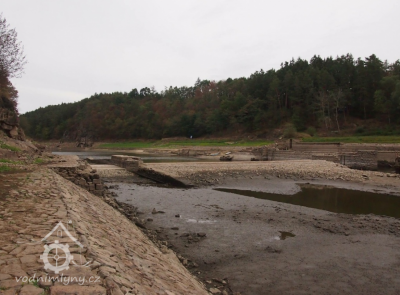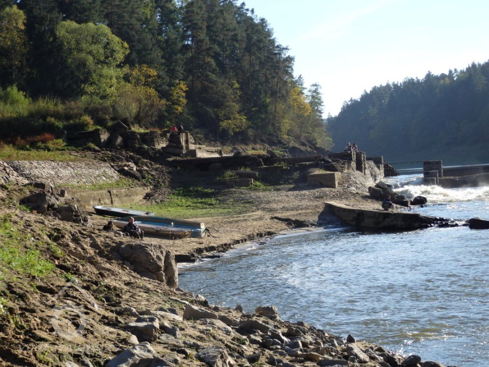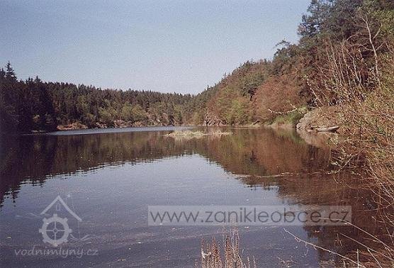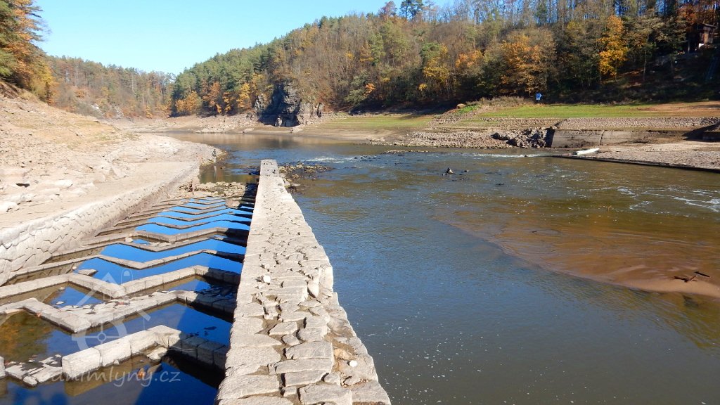 Zbytky mlýnu i s jezem jsou ukryté pod vodní hladinou Orlické přehrady.