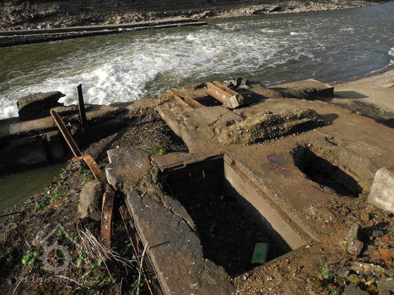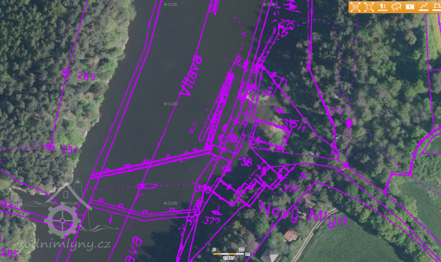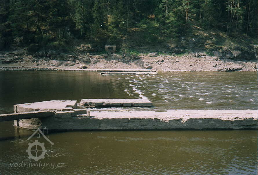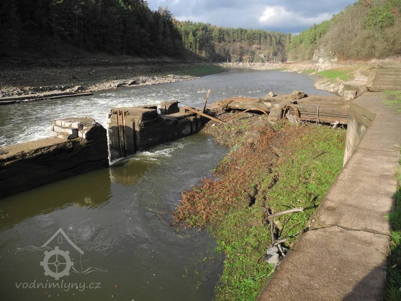 Voda byla přiváděna přímo od jezu, při poklesu vodní hladiny Vltavy je vidět zachovalý jez i s kompletním spodkem mlýna (elektrárny).
