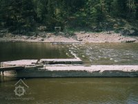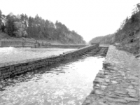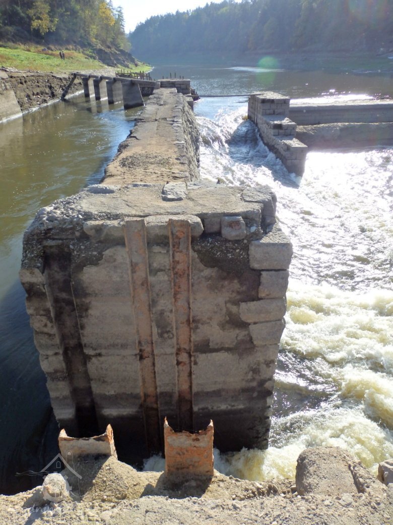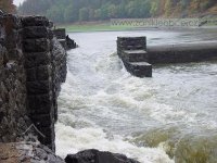 1928 jez dlouhý 66 m, dřevěné konstrukce, dlážděný kameny, proti podemletí chráněn štětovou stěnou umístěnou po i proti vodě