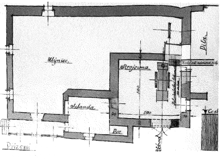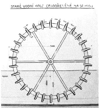 1930: 1 kolo na spodní vodu, hltnost 2,4 m3/s, spád 1,3 m, výkon 12 HP