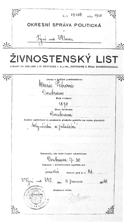 1902 František Petr (1867-1917), syn chalupníka z Kučeře s Marií roz. Šonkovou z Hvožďan u Bechyně, nebyl vyučeným mlynářem