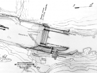 Nový jez kamenný, délka 46,5 m, na koruně pohyblivé dřevěné nápatky o výšce 40 cm, vzedmutí o 2,25 m vyšší než původní stav, před vtokem do přívodního kanálu 3 ledolamy ze železných kolejnic a dřeva, vyplněné kamenem