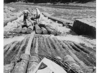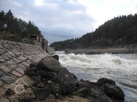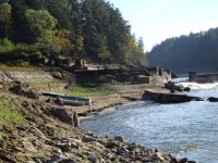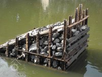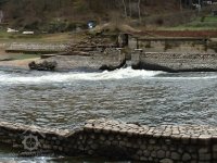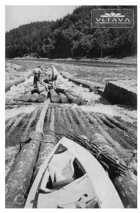 Propusť široká 12 m, dřevěné srubové konstrukce při levém břehu