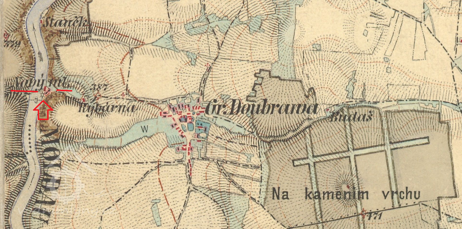 Doubrava v té době byla již čítána k panství Kalady (skutečný staročeský název). Zde prvně připomíná se r. 1588: „... ves Doubrava s mlýnem pod touž vsí na Vltavě. Byl-li mlýn již dřív, není nám známo...