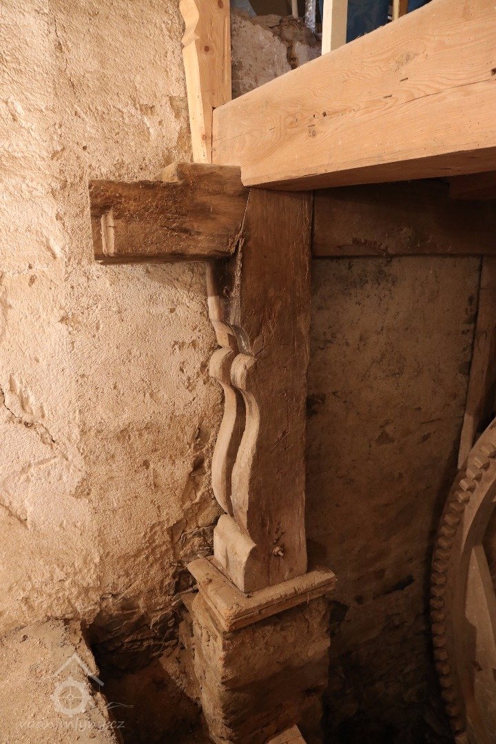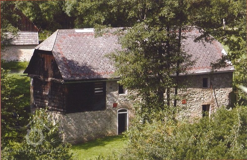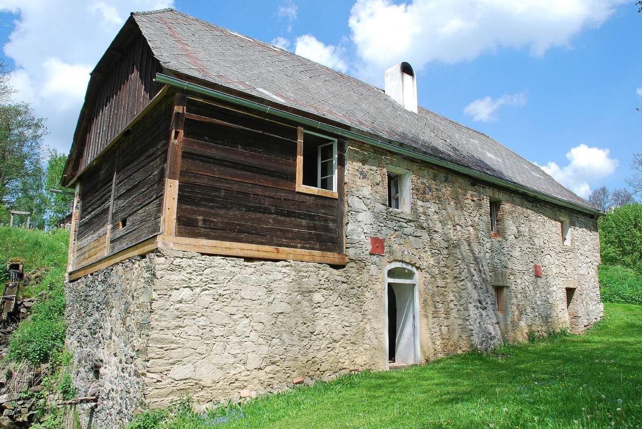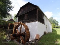 klasicistní mlýn z konce 30. let 19. století, vystavený s použitím starších roubených konstrukcí z poč. 18. stol.