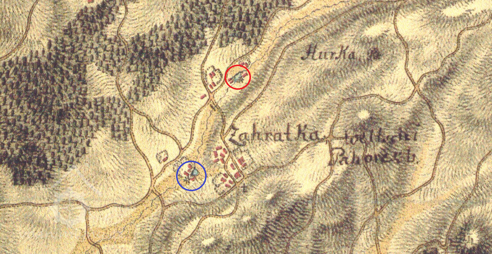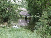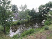 zděná stodola s roubenými výplněmi a rybník s podkovovitou sypanou hrází. Zbývající části vodního