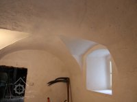 V ploše štítu je dvojice okének, výplně jsou novodobé dřevěné dělené do kříže. Až do poslední rekonstrukce byla okénka osazená v líci, dvoukřídlá, celkem šestitabulková. Okénka byla rámována pásovými šambránami.