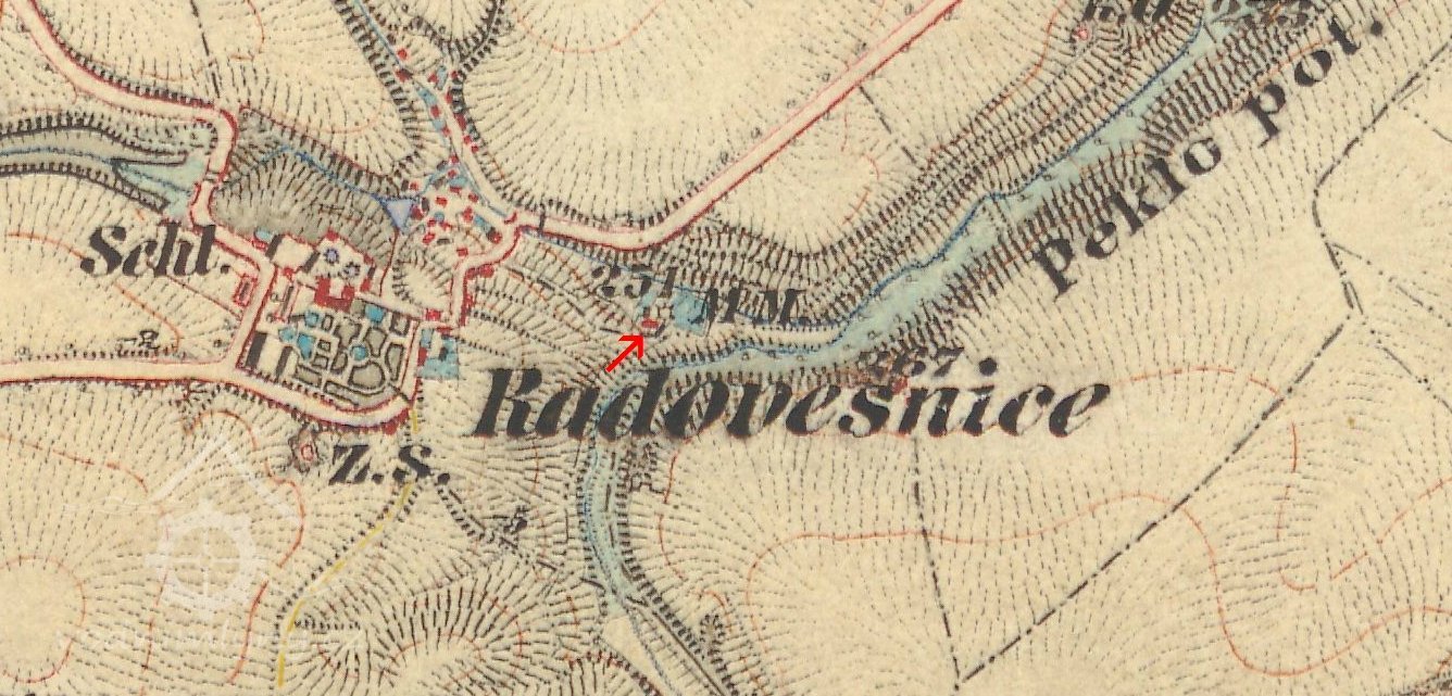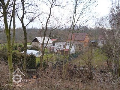 cca 100 m nad mlýnem je patrná odbočka bývalého náhonu