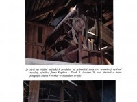 Konstrukce krovu prostá podélně vázaná, vaznicová, opatřená stojatou stolicí. Pozednice volně uložena na zdivu. Plné vazby obsahují vazný trám (podporovaný pod sloupky ještě zdivém nebo dřevěným sloupkem), svislé sloupky nesoucí středové vaznice, zavětrování oboustrannými pásky mezi sloupky a vaznicí, příčné zavětrování šikmou vzpěrou mezi sloupkem a vazným trámem, rozpěru mezi vaznicemi a krokve. Jalová vazba obsahuje pouze krokve osedlané přes středovou vaznici, většina krokví je napojovaná, tzn. ze dvou prvků - nad a pod středovou vaznicí. Zdivo severního štítu na rubové straně zesíleno polopilíři, stejně jako zdivo západní vyzdívky jižně od vjezdu.