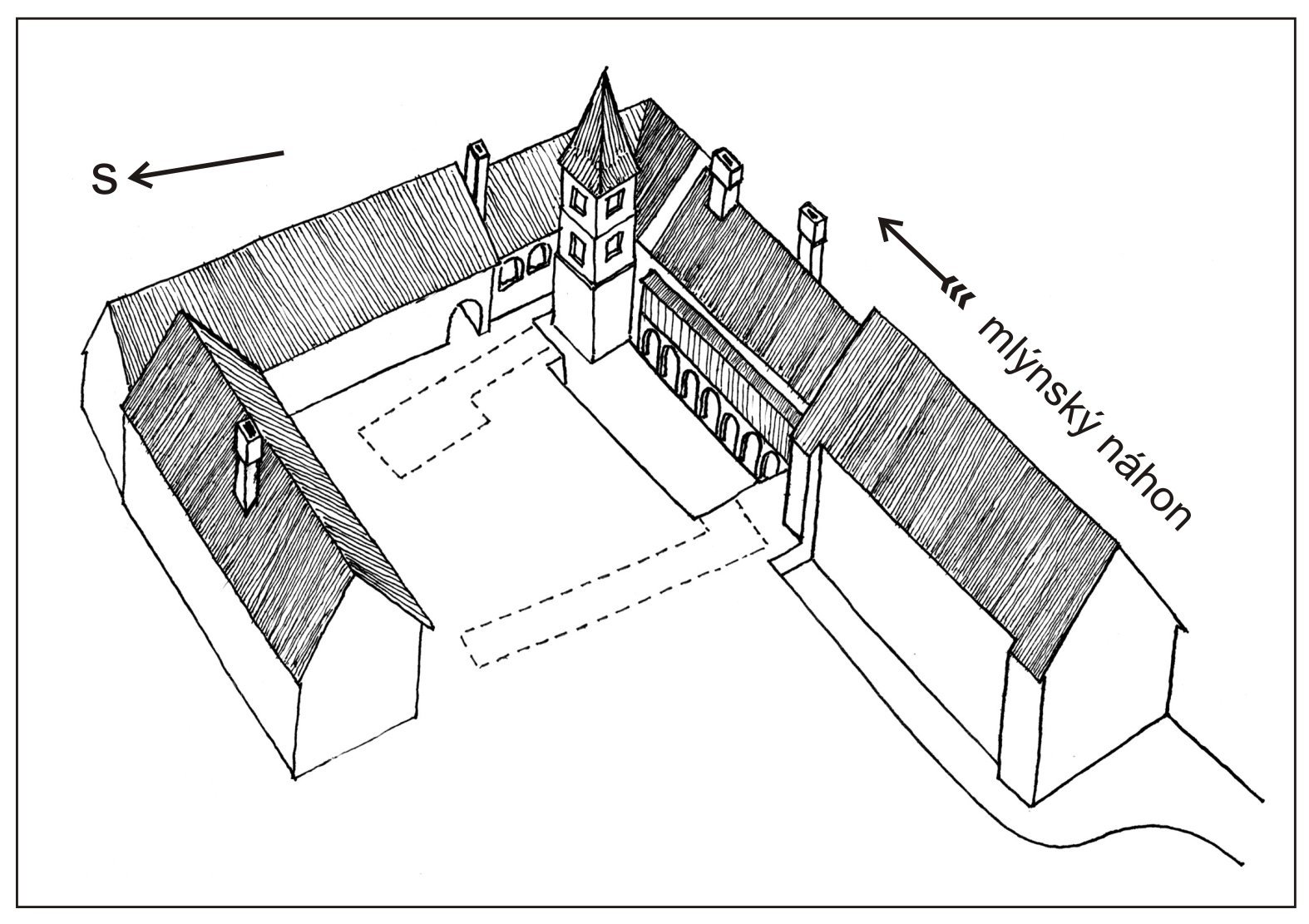 mlýn a sídlo, v období baroka klášterní rezidence, od druhé poloviny 20. století postupné chátrání firma STABIL, Ing. Daniel - podrobné zaměření a devastace, bez využití stávajícího stavu a stavebně technický průzkum (září, říjen 1992), stavebně historický průzkum PhDr. Jan Eliáš, Kancelář pro SHP, Gorkého 29, 602 00 Brno