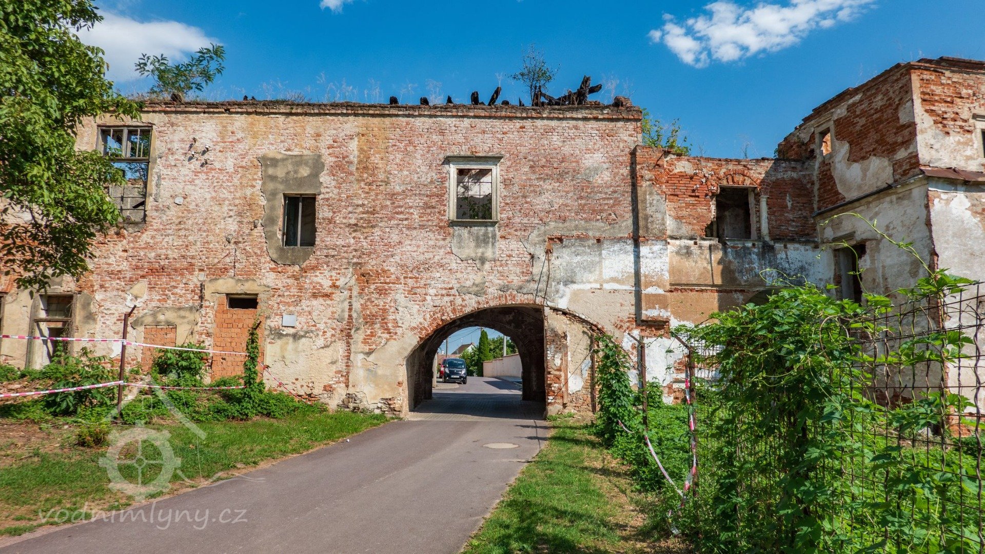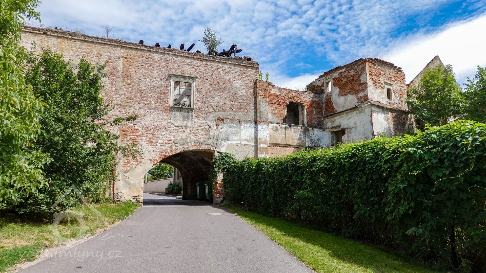 Soubor staveb bývalého mlýna a klášterní rezidence se nachází na jihozápadním okraji historického jádra vsi, na levém břehu více než kilometr dlouhého náhonu řeky Dyje. Trojkřídlá dispozice obklopující dvůr o dvou úrovních přiléhá svojí nejdelší, jižní stranou k náhonu. Východní, jednopatrové křídlo ve střední části prostupuje průjezd veřejné komunikace. Navazující severní, rovněž jednopatrové hospodářské křídlo sousedí s přízemním objektem. Soubor staveb je přístupný ze dvora, hlavní vertikální komunikaci umožňuje schodiště ve věži v jihovýchodním koutě dvora a schodiště v severní části východního křídla vedle průjezdu. Východní průčelí s vjezdem je dvoudílné, složené z jižní, kratší a nižší, mírně ustoupené části, a z navazující severní části. Severní, delší část východního průčelí je v úrovni přízemí členěna pásovou bosáží zalamovanou do klenáku vjezdu. Přízemí je odděleno od patra mělce profilovanou kordonovou římsou, v patře okenní otvory lemují ústupkové lištové šambrány se středovými klenáky, zalomené v horní třetině do průběžné římsy. Průčelí završuje částečně dochovaná fabionová korunní římsa. Fasáda je prolomena sedmi nepravidelně rozmístěnými osami. Portál průjezdu je kamenný, půlkruhový, členěný profilovaným oblounem a archivoltou dosedající na pásové pateční římsy. Severní průčelí, završené zčásti dochovaným trojúhelným štítem, je prolomeno dvěma novodobými pravoúhlými vstupy a dnes zazděným okenním otvorem s kamenným ostěním s profilovanou parapetní a nadokenní římsou. Na západní straně průčelí pokračuje přízemním přístavkem prolomeným čtyřmi čtvercovými okénky a pravoúhlým vstupem. Dvorní průčelí severní části východního křídla, směřující na západ, je patrové, završené fabionovou korunní římsou. V jižní části je klenutý průjezd, z části zazděný, v patře okenní otvor s kamenným ústupkovým ostěním, parapetní římsou a profilovanou nadokenní římsou. V přízemí i patře nepravidelně rozmístěné okenní otvory a vstupy jsou převážně zazděné. Dvorní průčelí severního křídla, obrácené k jihu, je patrové, s nepravidelně rozmístěnými, novodobě upravenými otvory. Na západní straně na severní křídlo navazuje přízemní stavba předsklepí. Severní část východního křídla obsahuje průjezd sklenutý stlačenou valenou klenbou se dvěma páry styčných výsečí s hřebínky. Z průjezdu vedl na severní straně dnes zazděný vstup do prostoru pod schodištěm do patra. Na jižní stěně je viditelná část kamenného ostění zazděného okenního otvoru. Místnosti v přízemí severní části východního křídla jsou plochostropé, okenní otvory v hlavním průčelí mají skosené špalety a rovné překlady. Patro bylo plochostropé, sálový prostor s okenními otvory s rozšířenými špaletami. Severní křídlo obsahuje v přízemí dnes předělený prostor čtvercového půdorysu s křížovými klenbami s hřebínky sklenutými na středový pilíř. V severní zdi je zasypaný vstup do sklepení. Další prostor je klenutý valenou klenbou a rozdělen na tři části, v severní stěně je půlkruhový cihelný pas, pravděpodobně související s dnes nepřístupnými podzemními prostorami. Patro je plochostropé.