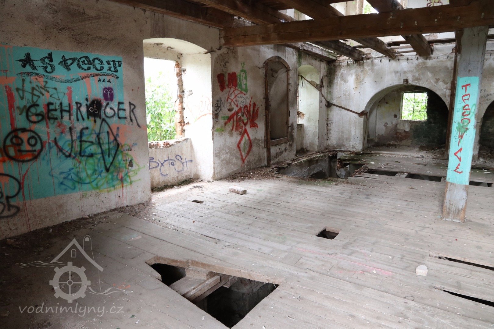 dochovaly se hodnotné historické nosné konstrukce (např. pozdně gotické, raně renesanční a renesanční zdivo, renesanční klenby, sloupy, některé omítky, barokní krov nad severní částí a fragmenty hodnotné architektury včetně některých detailů dekoru dokládající stavební vývoj souboru objektů bývalého mlýna ve zchátralém stavu, devastace a silná destrukce, v částečně havarijním stavu se samovolnou demolicí střech a některých kleneb, převážně bez výplní stavebních otvorů - nutná záchrana kulturní památky