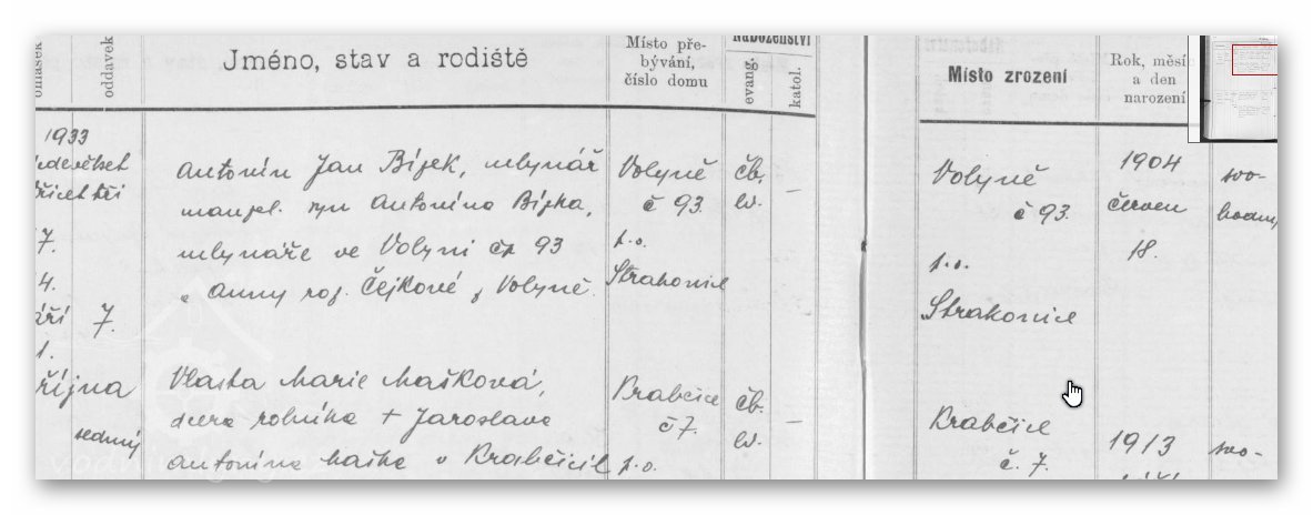 Přepis z pramenů: inventář, nájemní či kupní smlouva, výpisy z matrik aj.
