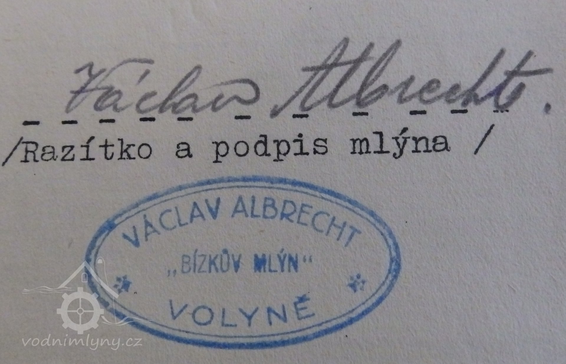 V roce 1930 byl majitelem mlýna Antonín Bízek. Při mlýně byla elektrárna.