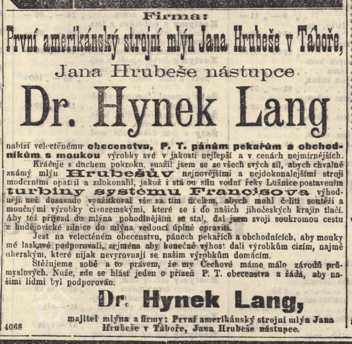 Josef Pichl *22.7.1852 mlynářství/stárek/mlýn Jana Hrubeše nást.spol. s o.r. Tábor;