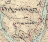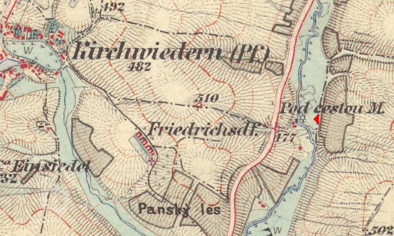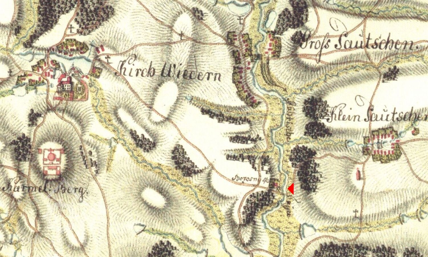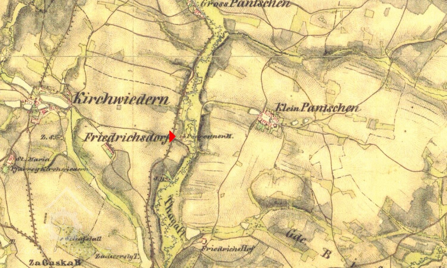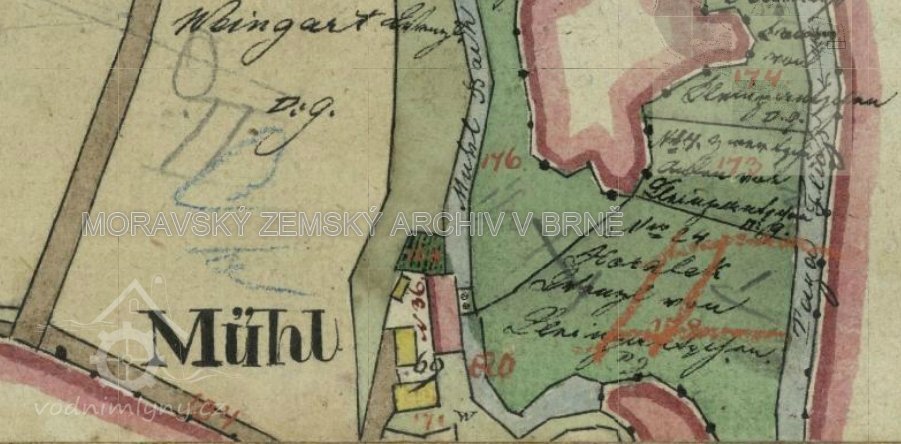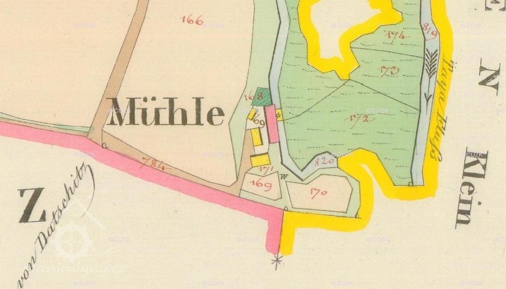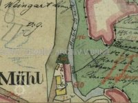 Mlýn doložen matrikami v r. 1771 a uveden na mapě I.vojenského mapování