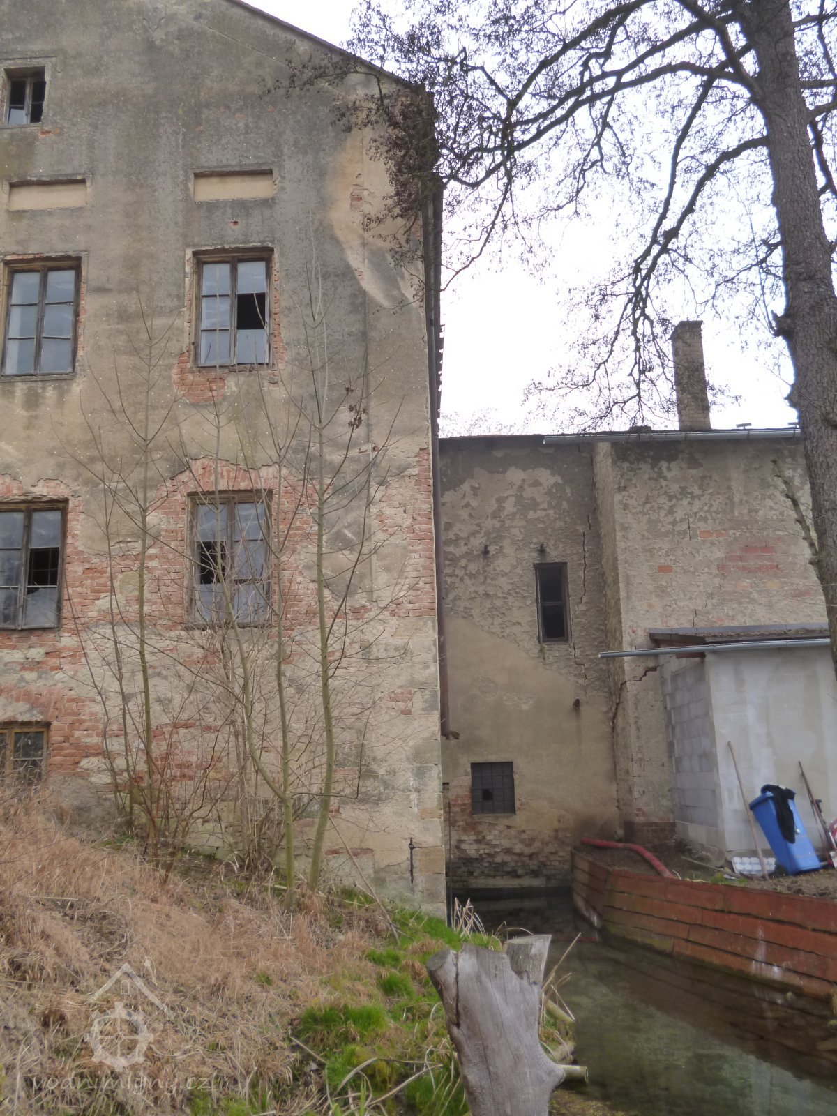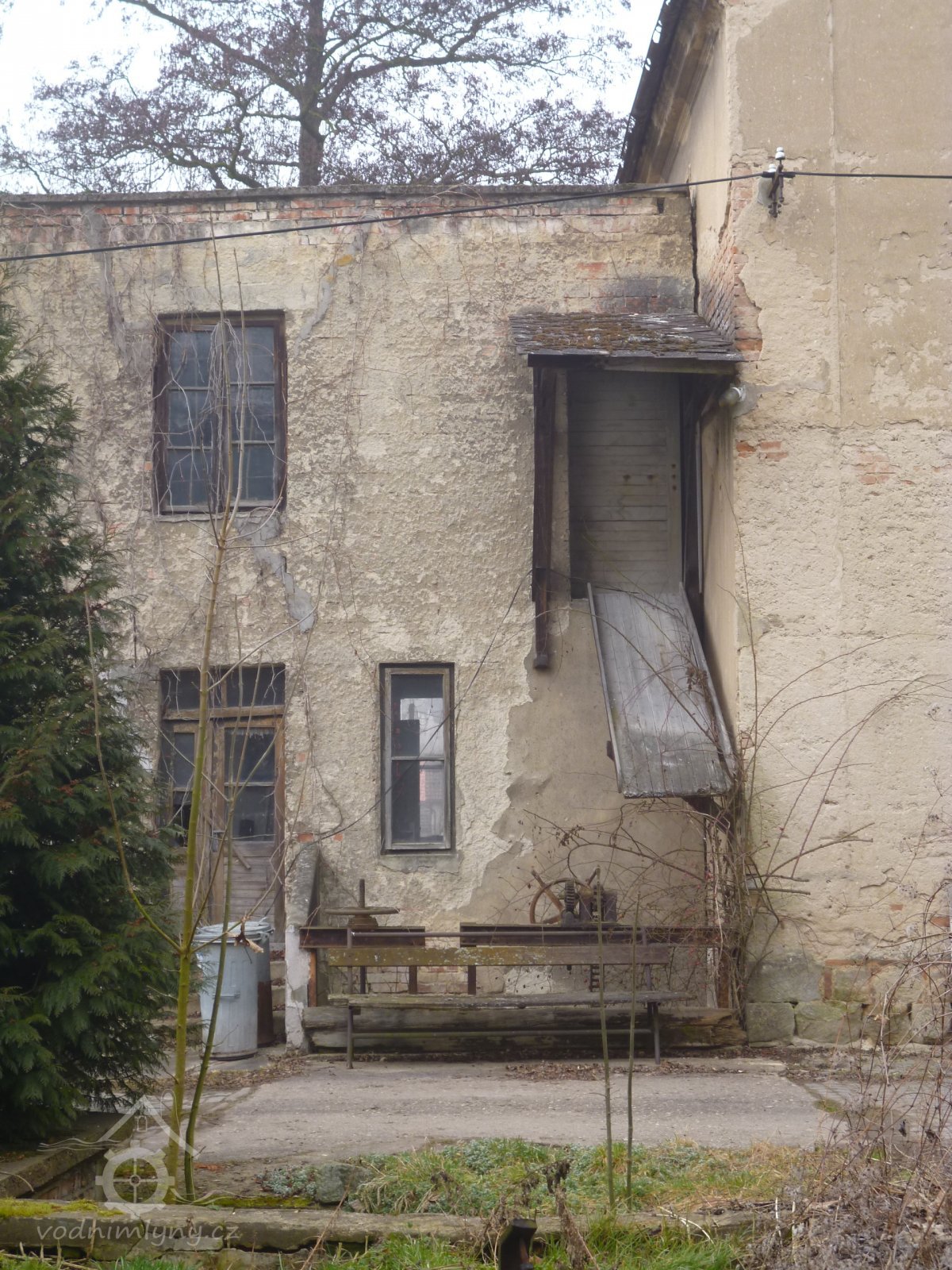 Mezi přístavkem a hlavní budovou se nachází betonové koryto mlýnského náhonu s dvěma stavidly. Mlýnský náhon prochází jižní částí hospodářského zázemí a je v celé délce zakryt betonovými panely. První stavidlo je užší, jalové o světlé šířce 0,8m druhé regulační (vpustní) o šířce 1,70m.