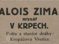 Na přelomu 19. a 20. století byl v Krpech mlynář Zahrádka. (Šebek)