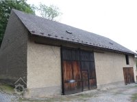 Při východní hranici dvora je obdélná průjezdní stodola orientovaná okapovým průčelím do dvora. Střecha je sedlová, pokrytá eternitovými šablonami. Omítka je stříkaná. V severní polovině objektu jsou v západní a východním průčelí mohutná dřevěná posuvná vrata. V jižní části západního okapového průčelí jsou dvoukřídlá vrata a shozový, vertikálně obdélný prostor ve středové ose nad nimi (obr. 8). Tato stodola nahradila po roce 1915 původní dřevěný objekt.