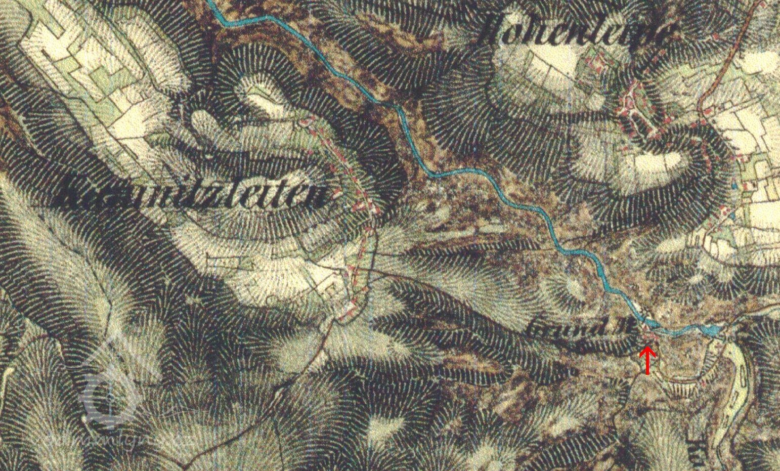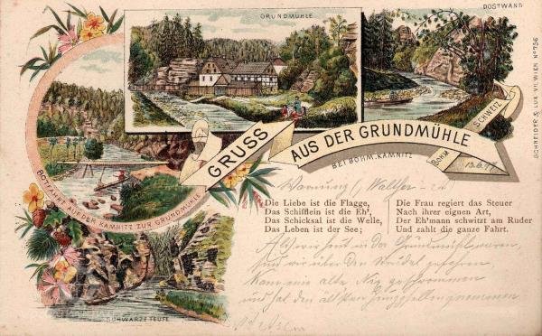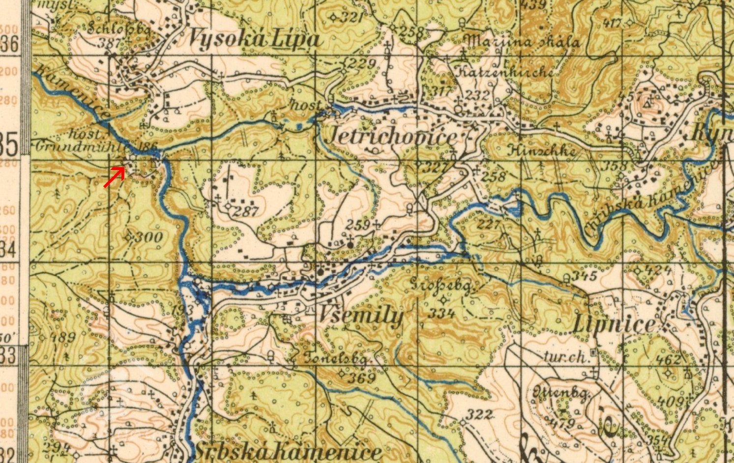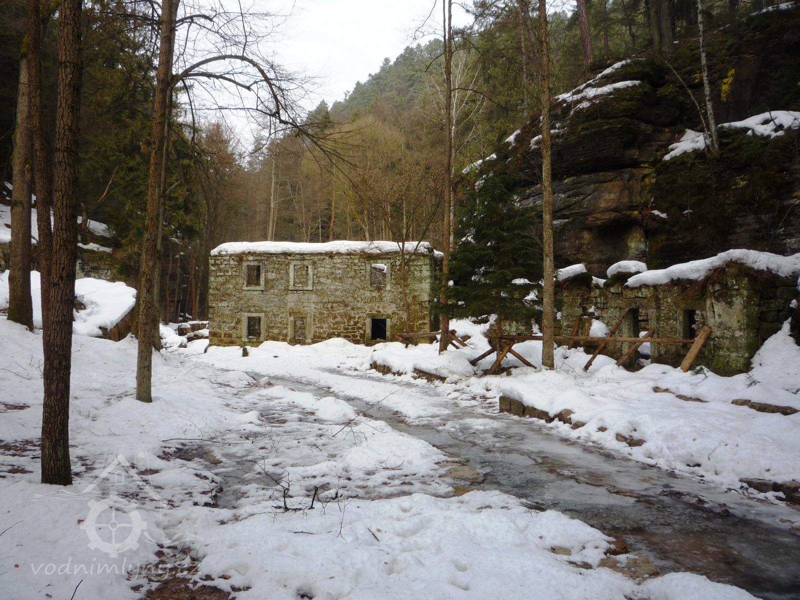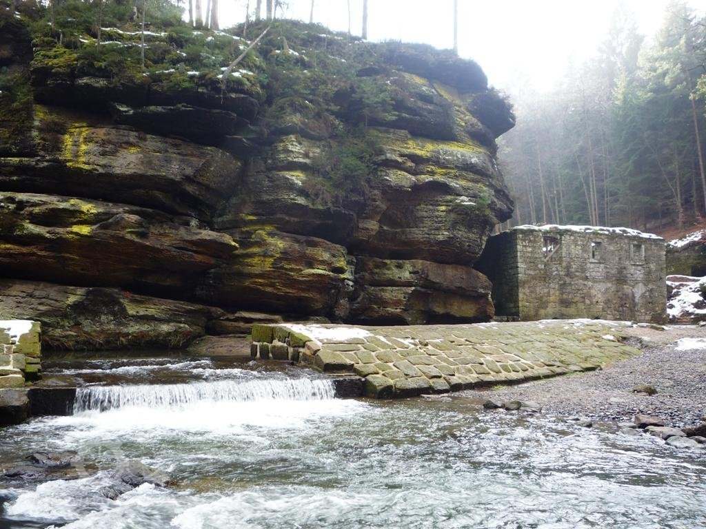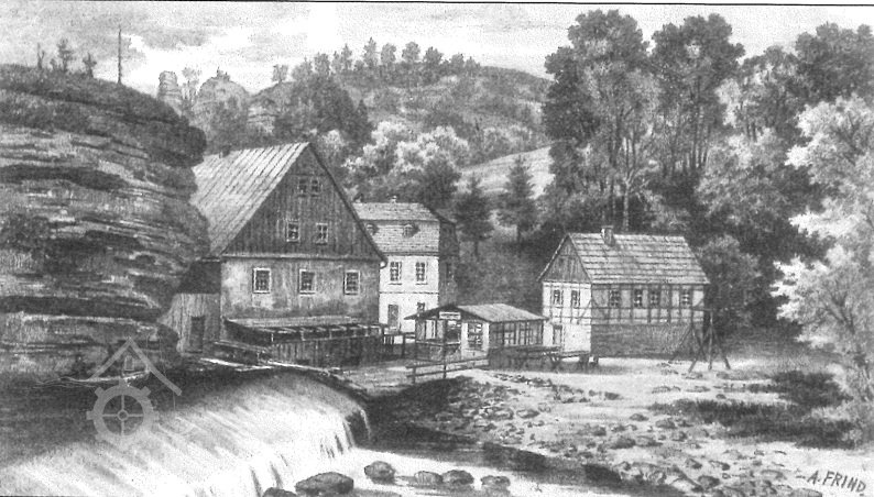V oblasti pískovcových skal je o vodní zdroje nouze. Územím protékají pouze dvě významnější vodoteče, které měly dostačující průtok pro pohon starších technických děl - řeky Křinice a Kamenice. Složitý reliéf jejich břehů však mnoho vhodných stanovišť pro vybudování mlýnských objektů a potřebné komunikační sítě nenabízel. Příhodné místo u řeky pod Kamenickou Strání tak bylo využito i přes odlehlost mlýna od všech nejbližších obcí.