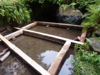 Kromě technické zprávy zpracoval statik současně i návrh stavebně-statického zajištění objektu, a to do detailního rozepsání, kolik jakého materiálu bude zapotřebí, včetně hrubého odhadu ceny. Díky tomu měla Správa Národního parku na podzim v rukou projekt - a současně jasnou představu, že nic z toho nemá šanci zaplatit. Jenže pokud měl mlýn přečkat jarní povodeň, nešlo čekat na zázraky. Bylo zapotřebí okamžitě udělat alespoň základní opatření: vykopat odvodňovací strouhu zaneseným náhonem, dolní hranu návodní stěny zapřít piloty a celou stěnu podepřít dřevěnou konstrukcí. Tak se sebralo pár nadšenců ze Správy NP a pustilo se alespoň do kopání strouhy vodním náhonem.