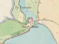 Roku 1677, folio 198n – 200n - urbář Kostelecký Popis bývalých obecních statků města Kouřimě, kdy byly již knížete Lichtenštejna Mlejn Hrázskej pod Kouřimí Ten někdy k městu Kouřimu a důchodům obecním přináležel. Nebo v starých pamětech vynachází, že jest od pánův Kouřimských v létu 1489 vystavený byl. A leží pod rybníkem Hrázský (dříve zvaný Veliký) naproti polední straně a k půlnoci, od země kde strojové nebo mlejnské složení jest, vše od zdi z kamení vyzdvižený tímto způsobem: Předně přijdouce ze dvora od strany západní ke mlejnským veřejům dřevěným jsou dveře na klapačkách, a projdouce skrze ně po čtyrech stupních dřevěných níže od země a do mlejna, nacházejí se mlejny nebo složení pro mletí mouky s kolmi vodními, palečními a všemi potřebami příslušejícími po straně vejchodní dvoje. I ten předce v tý straně kolo vodní a proti němu ve mlejně jahelka se všemi potřebami. Zase čtvrté kolo vodní s hřídelem, pupky, které táhne 5 stup a pod nimi jest štok ze dřeva spůsobený. V tom mlejně je oken 5 bez skel, na západ 2, na vejchod 3, a dvířka s klapačkou nad lednicí okolo strojů mlejnských, podobně stup podlaha z prken falcovních, aby se obilí rozsejpati nemohlo, uděláno jest. Item okolo vodních kol zděná lednice, a místem, kde potřeba ukazuje, prkny opažena, aby voda od kol stříkající se zdí vápno nevyplachovala. Opět z toho mlejna dřevěný veřeje s dveřmi na pantech do komory zděný klenutí jsouce hrubě rozpukány, sloupy a kříži podtaženy, což mlynář pro dobytek hovězí potřebuje. A za tím ještě jedna komora zděná, pod světnicí prázdná; do těch komor okna 2 bez skel. Z toho mlejna nahoru na líhách tesány schody do hořejšího stavení a podlahu nade mlejny na falc složenou pro sejpání obilí. Druhé stavení hořejší následuje : sejdouce s hráze rybníka, slove Hrázského, přijde se na pavlač (podle vantroků) toliko vyštocholcovanou po straně vejchodní, a z té pavlače veřeje dřevěný s dveřmi na pantích do síně na západ. Z té síně dveře na pantích do světnice, roubeny na poledne, v ní okna na vejchod zabedněny, jedno na poledne se skly 2 a na západě též se sklem 1. Kamna prostý na zděným. Topení ze síně s pláštěm mazaným a komínem štycholcovaným. Pec pro pečení chleba pod zákamní do světnice jedna. Zase z té síně veřeje na podlahu na falc složenou nad stroje mlejnské, což se za síň nebo sejpku pokládá. Na ní okna na vejchod bez skel 2, na západ 2 a schody na líhách tesány na svrchní podlahu dílem mazanou a ostatek z prken kladenou. Opět z té síně komory 2 k půlnoční straně s dveřmi na pantech, v nich podlahy nad stroji mlejnskými na falc složeny. To všechno stavení hořejší (mimo světnici roubenou) na vazbu a lepenici postaveny jest. Nad tím celým štokem krov náležitý postavený, šindelem pobitý jest, na poledne štít prkenný, v něm dvířka na pantích a na západ svisle jsou. Opět zpředu jmenované síně a hořejšího stavení, jest pavlač s podlahou po obou stranách na štycholce mazaná, krůvkem přikrytá a šindelem pobitá, přes dvůr do druhého štoku z kamene vystaveného, v němž se nacházejí při zemi zděná maštal pro 6 koní nebo dobytka hovězího. Proti té pavlači komora prostřední zděná s dveřmi na pantích, a z ní do hořejší (v třetím vejšky stavení) komory schody na líhách tesány. Ten štok krovem přikrytý krakolci pro bezpečnost zdí od trámů stažený a šindelem pobitý jest. Při tom dotčeném štoku při zemi podle maštale jsou dva chlévy roubeny, nebo krmníky sviňsky, jeden na západ a druhý na půl noci, s dveřmi trojími na klapačkách, toliko námětky přikrytý a došky pošitý. Zase naproti tomu mlejnu a štoku zděnému jest při hrázi stodůlka o jednom zádění s mlátkem, kdež někdy nějaké chlívky bejvaly, přikrytá krovem a došky pošitá. Item proti strojům mlejnským na dvorečku klenutý podzemní sklep bez přikrytí, sdveřmi na klapačkách. Skála tvrdá křemenitá po straně proti splavu a vantrokám mlejnským. Z toho mlejna platí mlynář nájmu ročně : Vepře 4 nebo za každého po 8 zl. 10 kr. rýnských. Žita 50 korců, nebo za každý korec odvésti peníze vedle trhu v kraji jdoucího a potřeby vrchnosti. Otrubů žitných 25 korců. Od p. Havla r. 1677 zvejšen o 2 vepře a 14 kop míšeňských. K nájmu se mlynářovi přidává ode dvora Zárybnického rolí k osívání 2 kopě záhonů. Item palouček nad rybníkem Hrázským a cestou, jdouce do Kouřima po pravý ruce na poledne, na němž nakliditi může sena 1 vůz. Item jdouce k pustému dvoru Zárybnickému štěpnice s 15 štěpy, dílem višňovým, kouskem štěpnice, rolí pro předivo a ostatek s pláněmi. Palouk a zahrada odňata ke dvoru Zárybnickému. K tomu mlejnu přináležejí s melivem ves Lipany a Dobré pole.