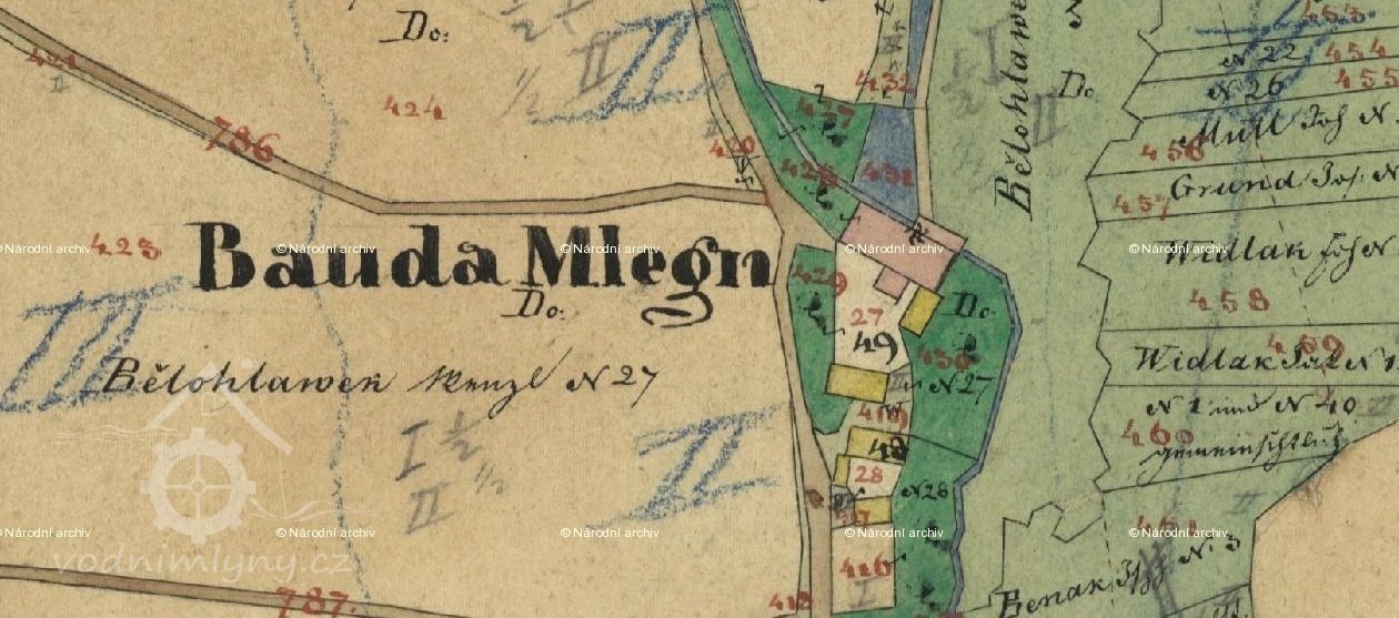 V letech 1821-1856 byl na mlýně mlynářem Václav Bělohlávek, syn Václava (ZM)